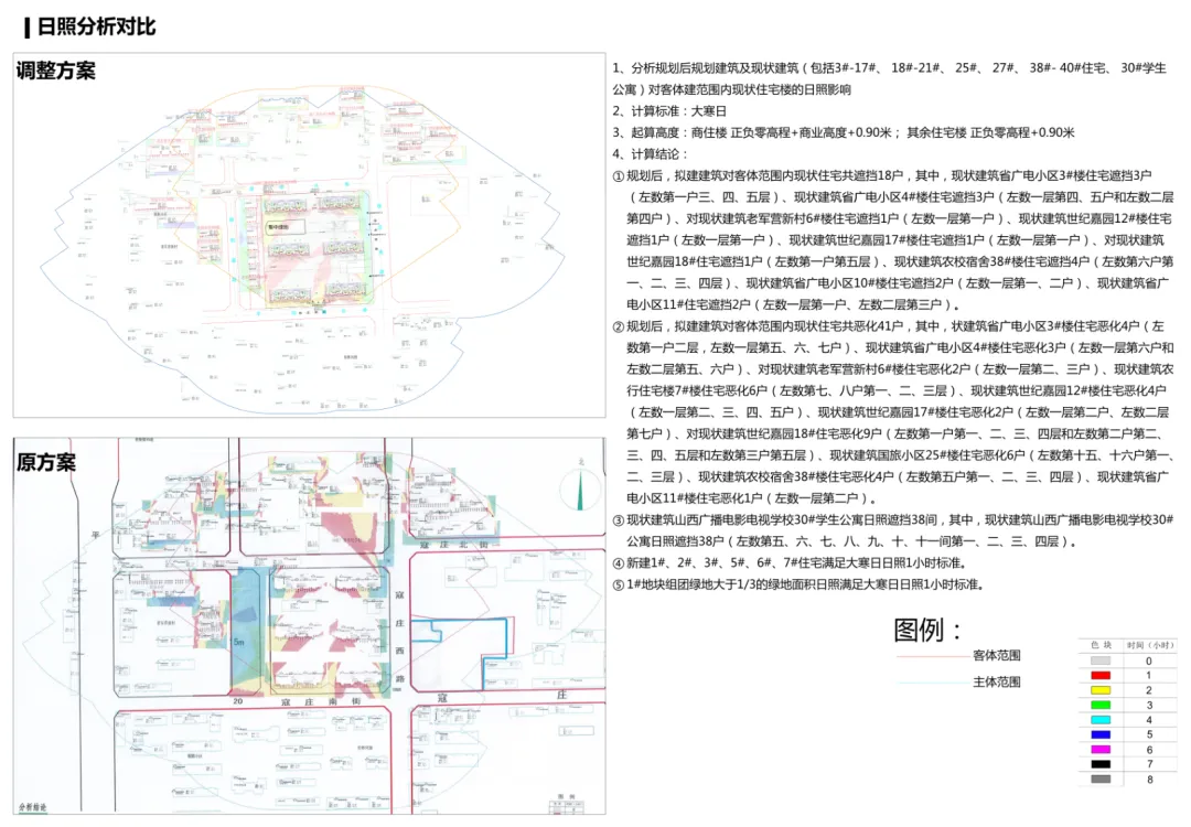 和2025年版本的调整对比,仍有很大改变!2025年的版本建筑高度从136.55米调整到208.88米,可谓是艺高人胆大,其遮光影响更重!
