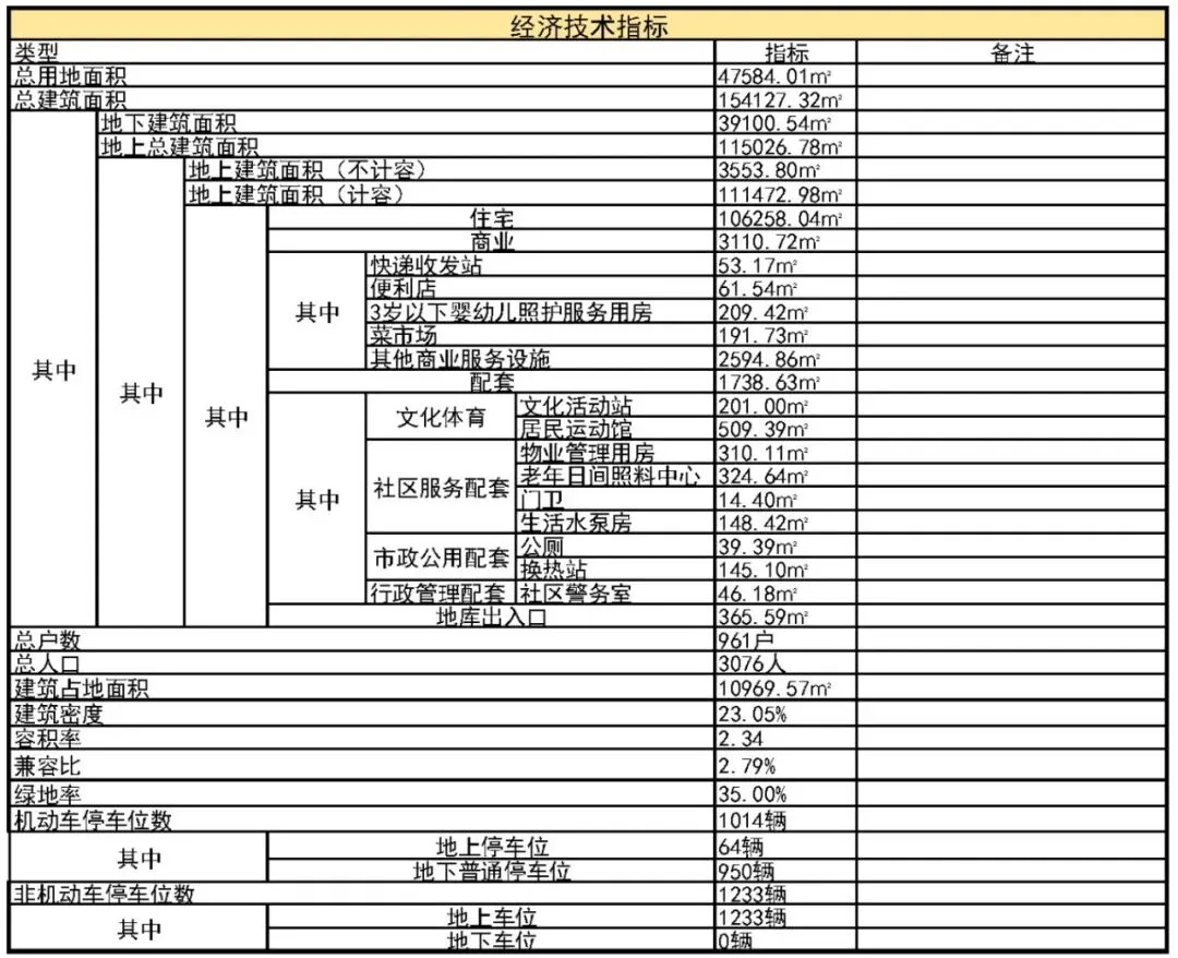 从经济技术指标来看,项目配套服务设施2594.86㎡,涵盖居民生活方方面面: