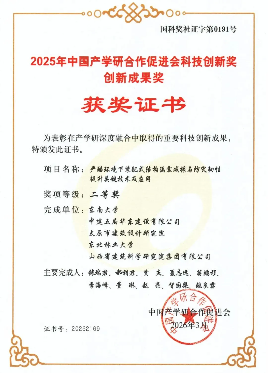 3月15日,第十七届中国产学研合作创新大会在北京召开,会上正式揭晓2025 年度中国产学研合作促进会科技创新奖评选结果。由太原市建筑设计研究院参与申报的科研项目——《严酷环境下装配式结构隔震减振与防灾韧性提升关键技术及应用》,凭借突出的技术创新与工程应用价值,荣获创新成果奖二等奖。