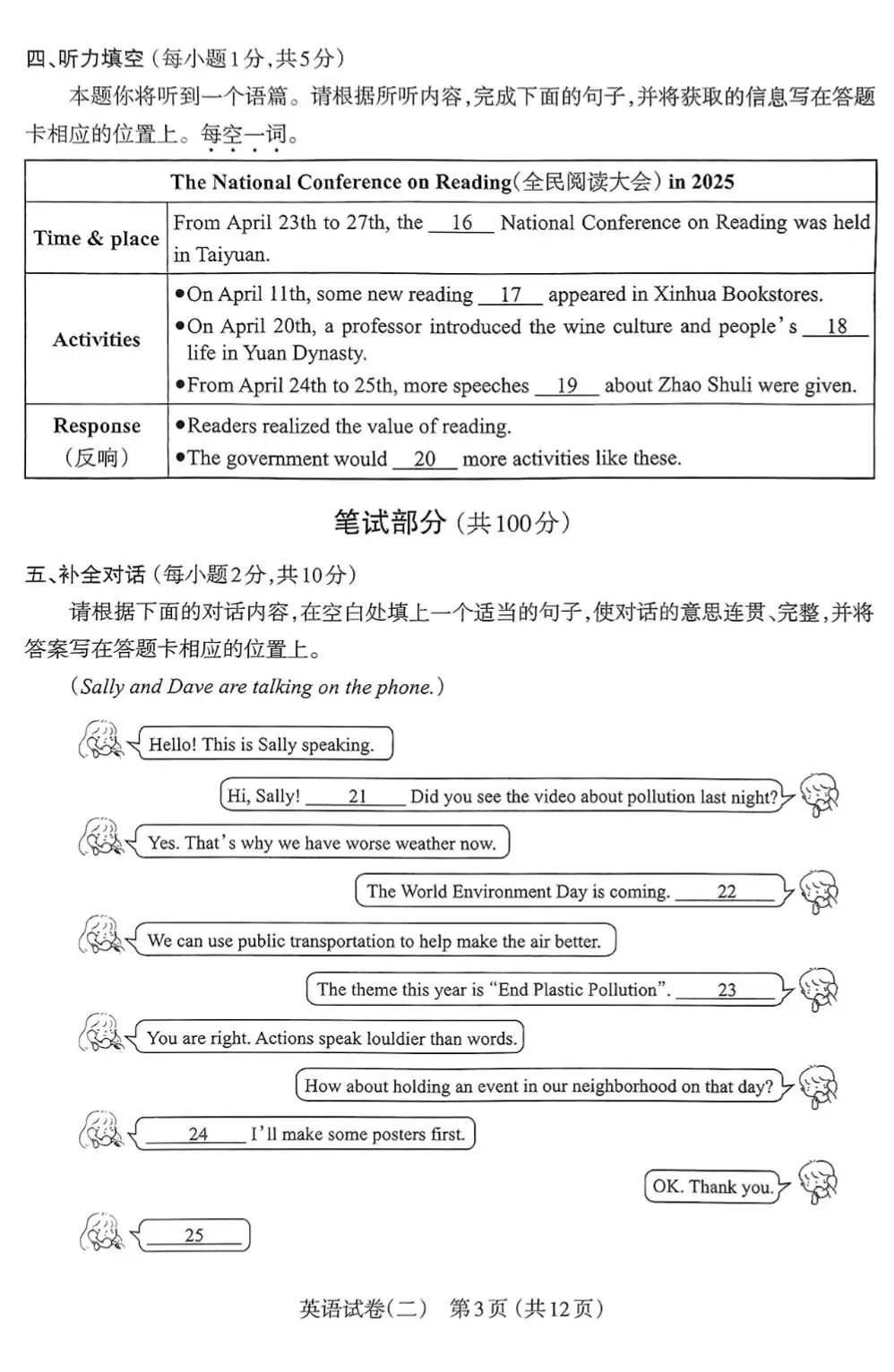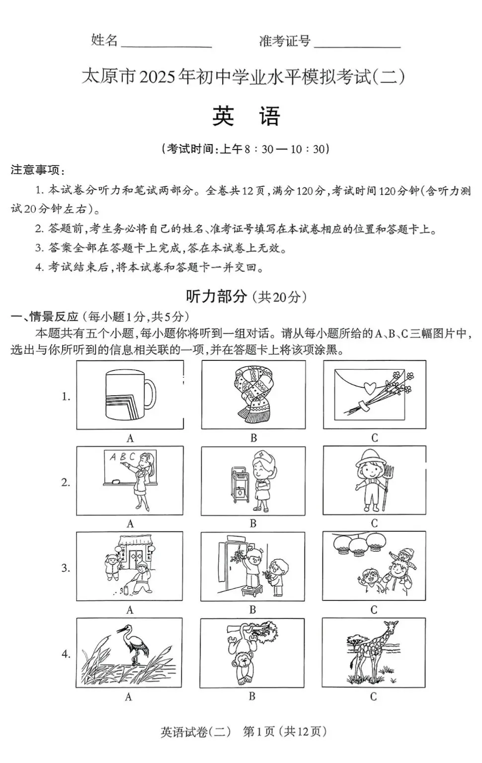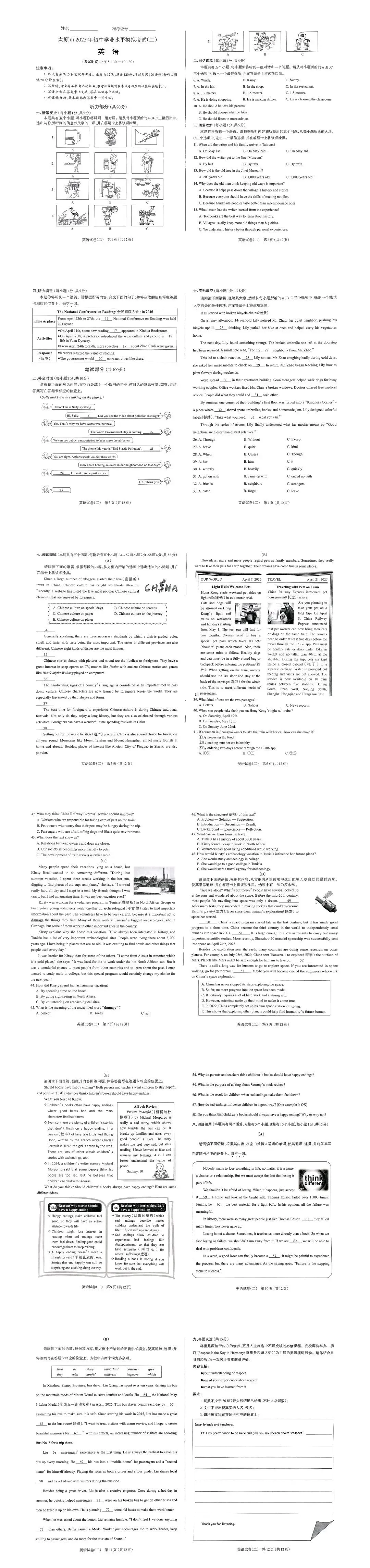 >【市二模】太原市2025年初中学业水平模拟考试(二)英语试卷+听力+答案