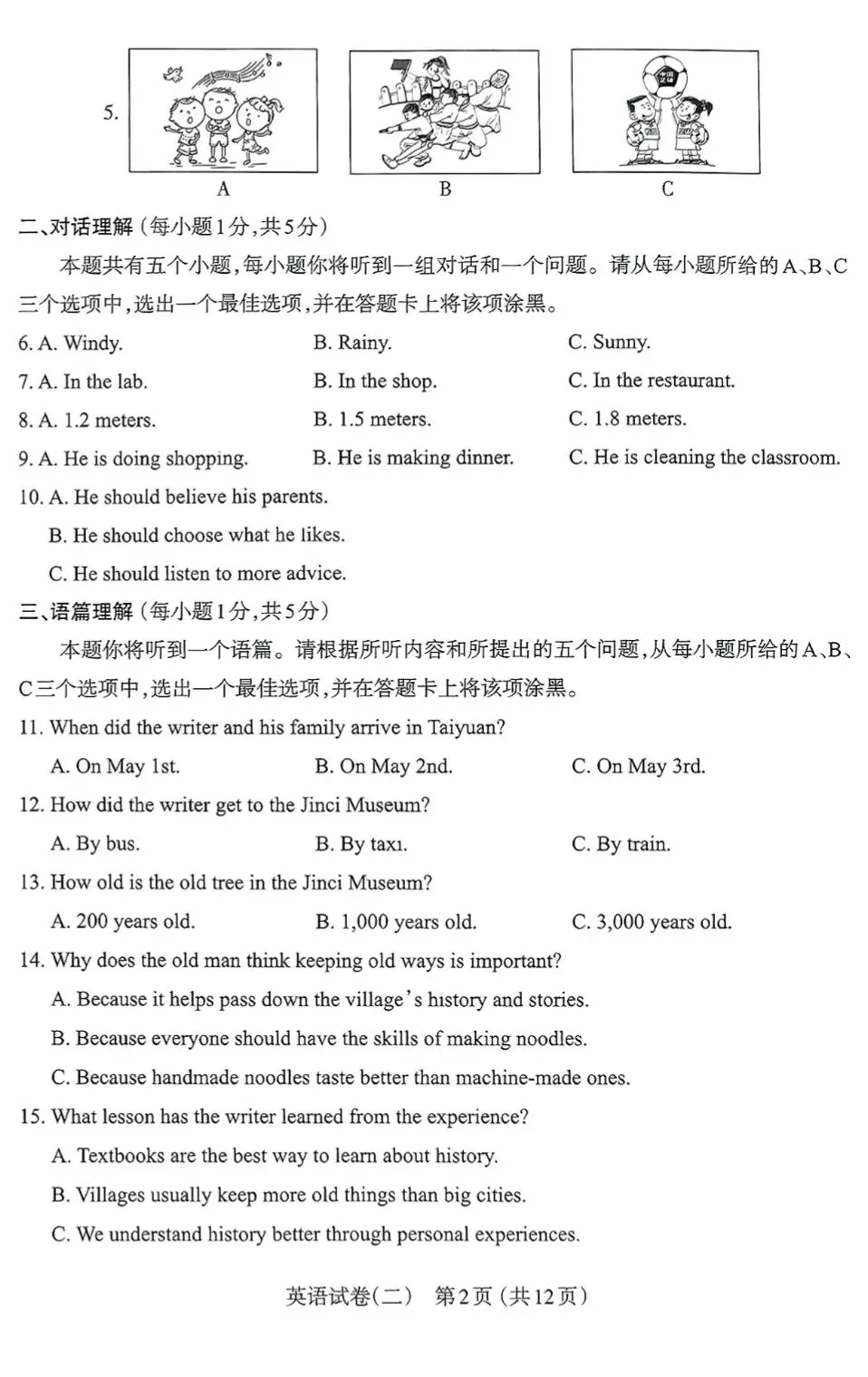 【市二模】太原市2023年初中学业水平模拟考试(二)英语试卷+听力+答案