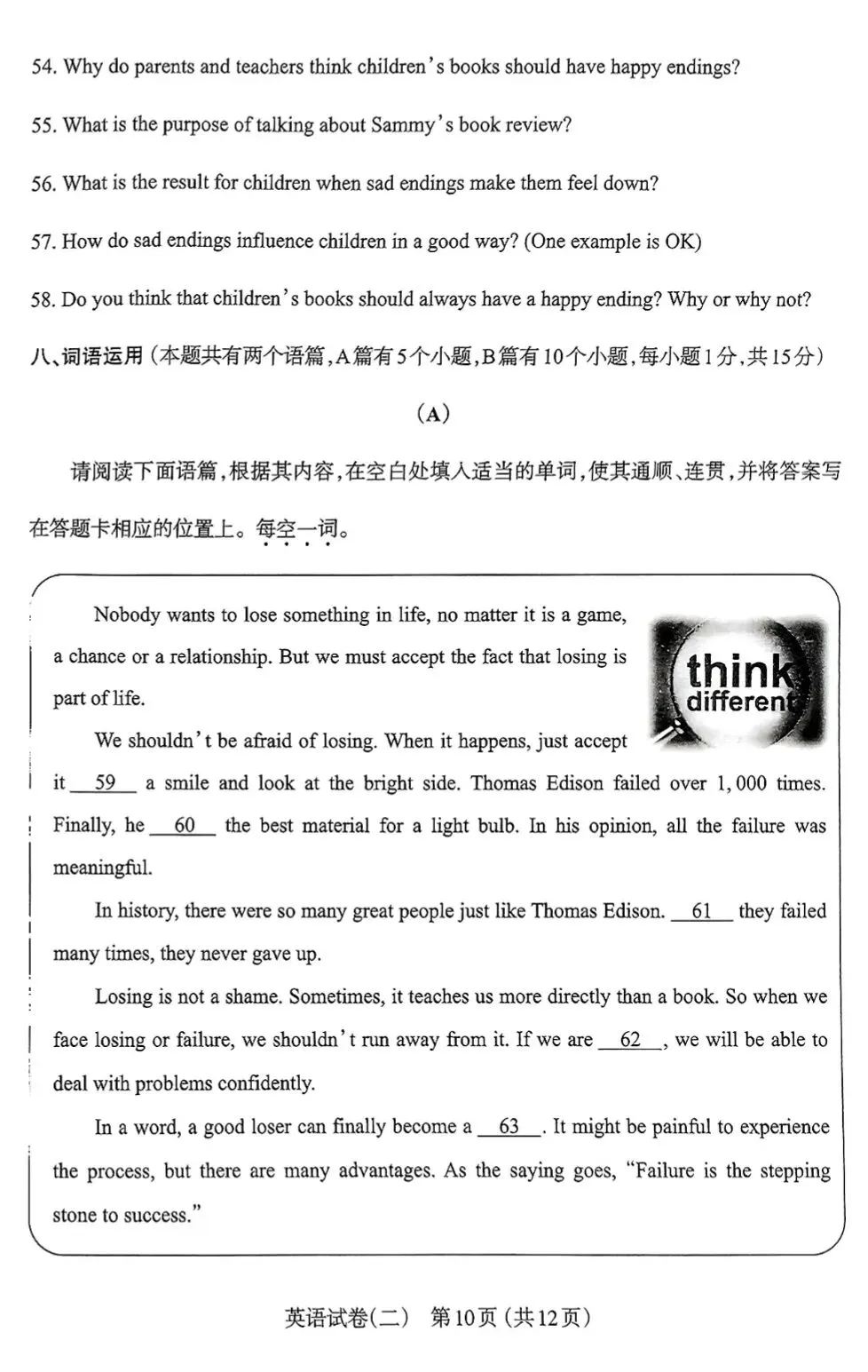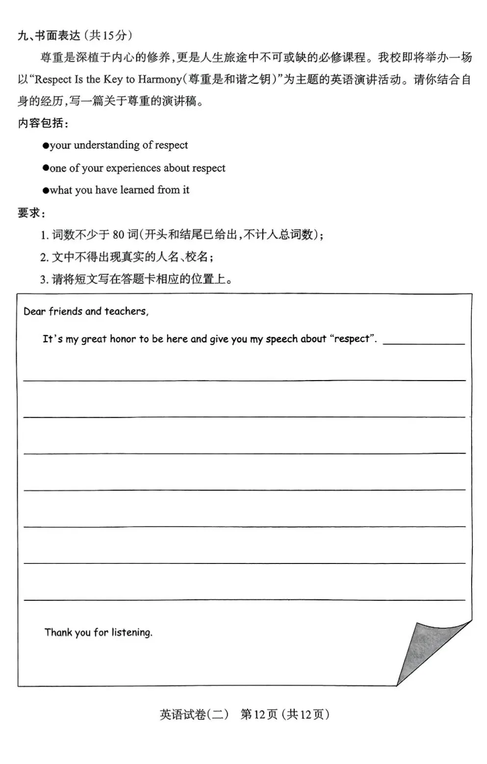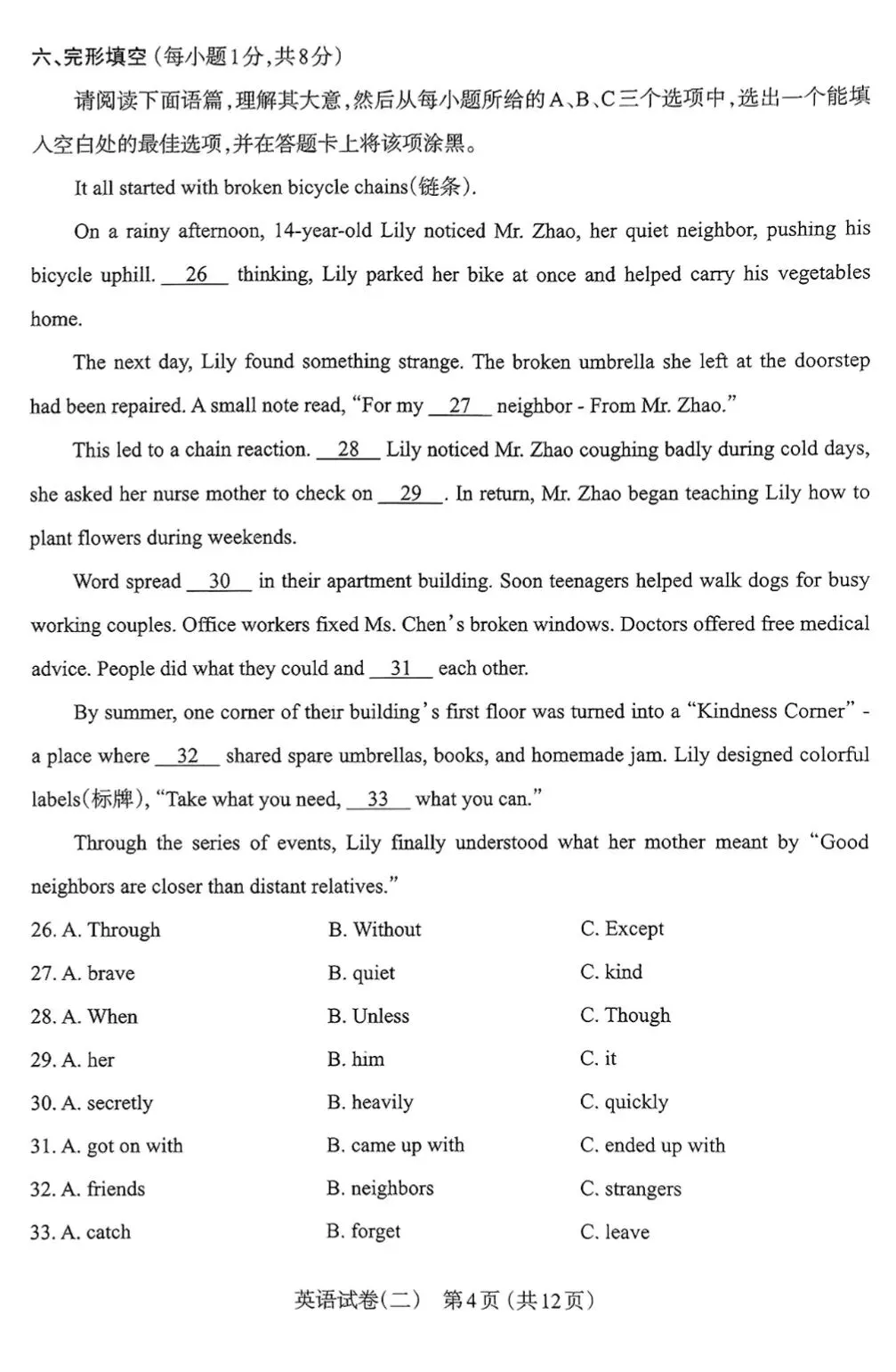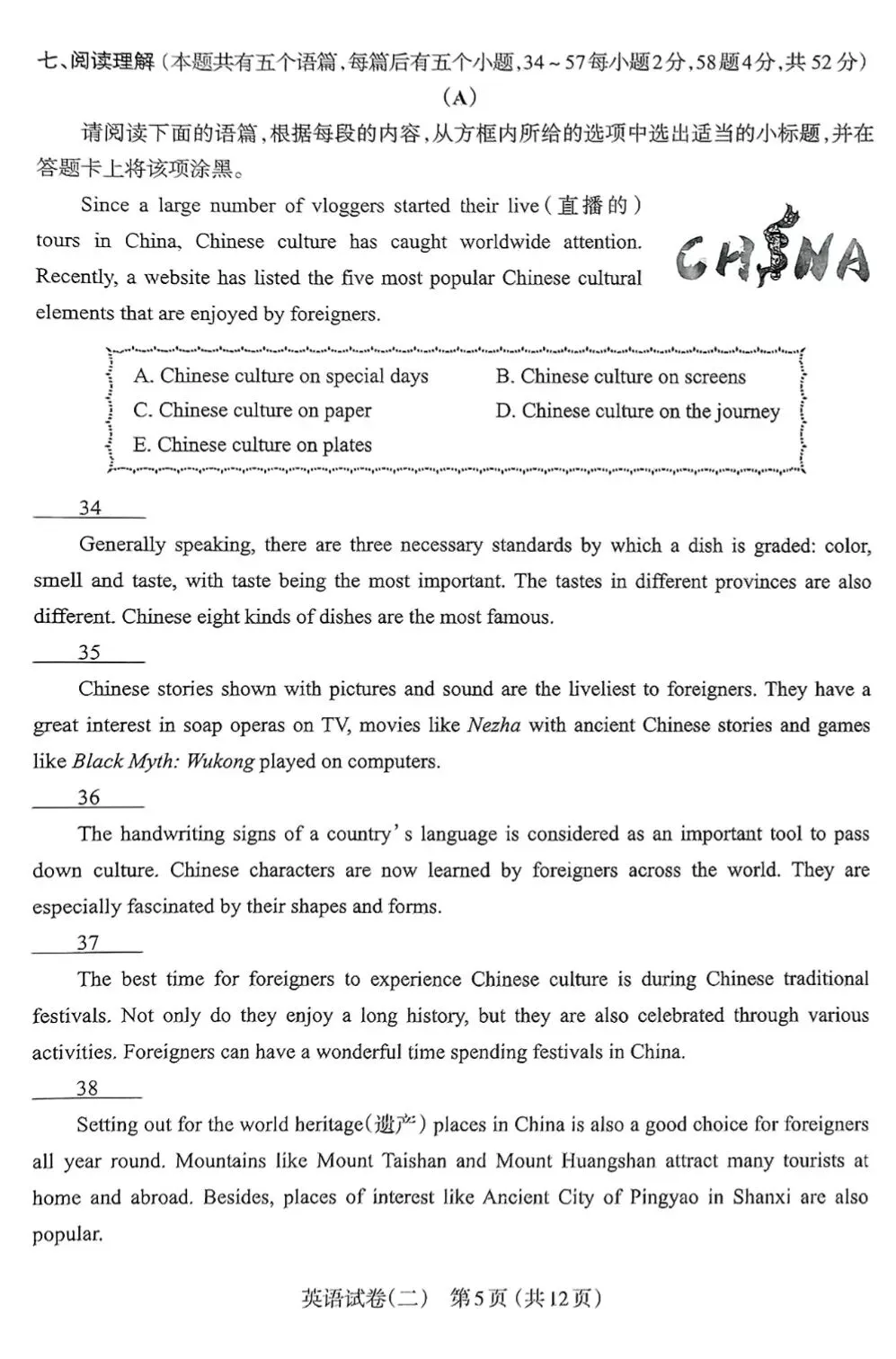 【市二模】太原市2022年初中学业水平模拟考试(二)英语试卷+听力+答案
