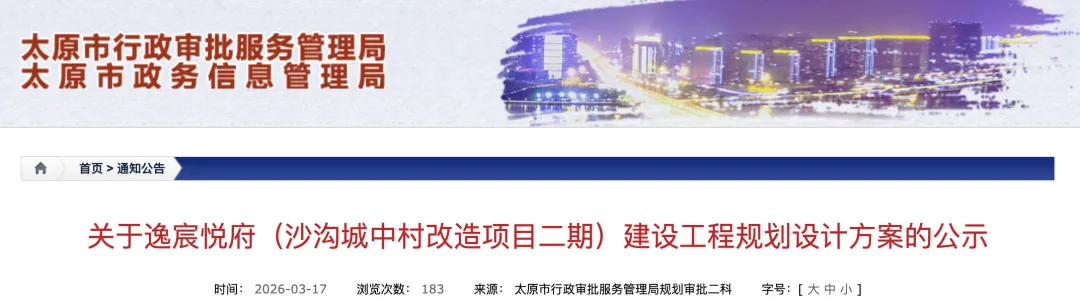 除此次公示的项目外,2025年10月沙沟城改三期规划方案公示,总建筑面积12.43万平方米,规划621户,同样由山西鸿雅房地产开发有限公司建设。