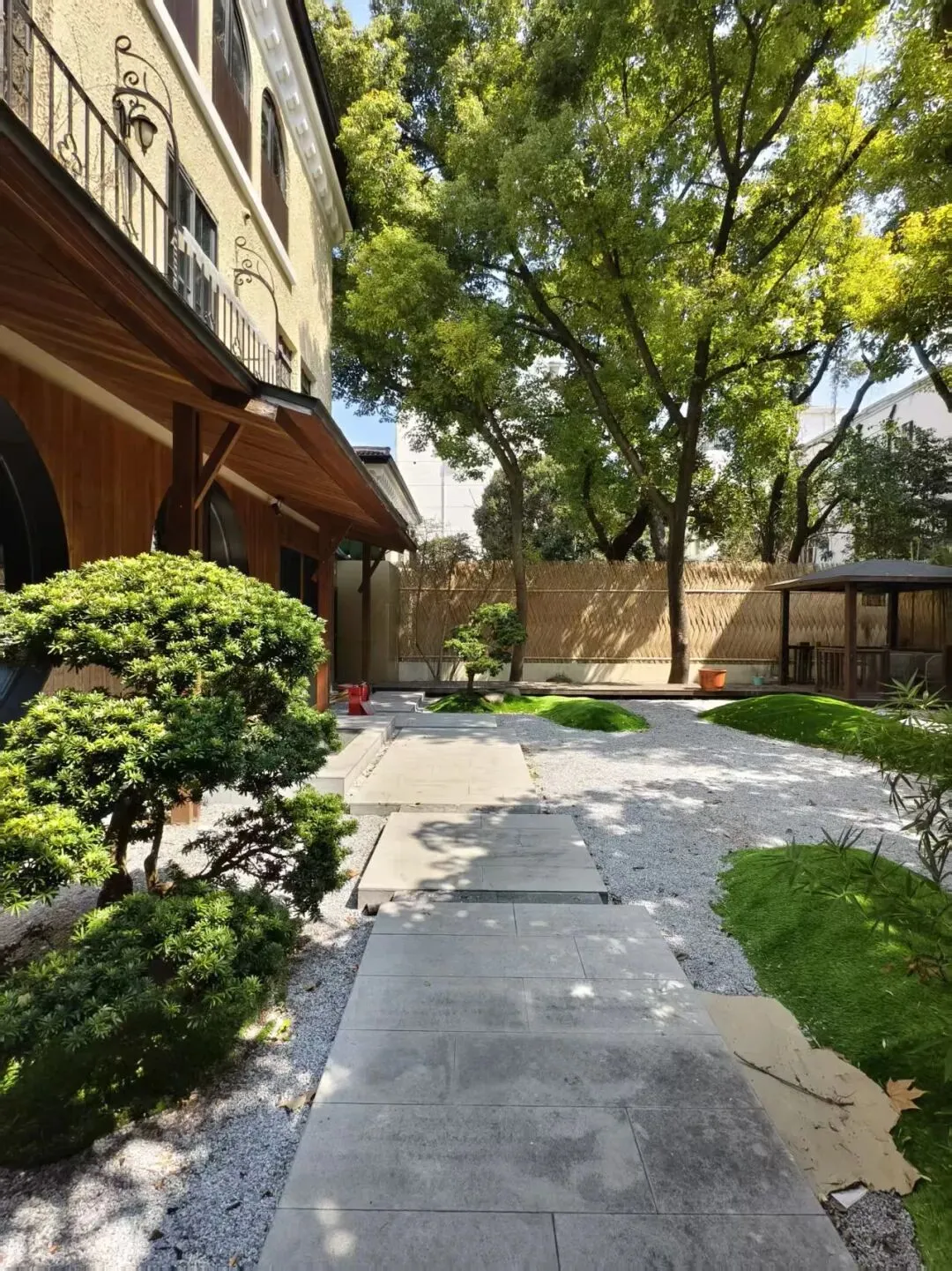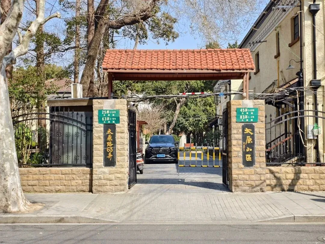 太原小区位于法租界西区(今徐汇区太原路、永康路交叉口),由法商中国建业地产公司投资,公和洋行设计,1930 年动工,1931 年竣工;原名雷米坊(Remi Lane)、永康新村,后因地处太原路,通称太原小区;核心范围包括太原路 25、45、63、83 弄及永康路 177-209 号。建筑风格为西班牙复兴式,多联排 / 双拼花园住宅,拉毛水泥外墙、筒瓦坡顶、拱券门窗、小阳台,搭配棕榈树,充满南欧风情;早期住户以法国侨民为主,兼少量英美人士,民间叫 “外国弄堂”。太平洋战争爆发后,外籍居民大量离沪;抗战胜利后,不少军政官员、买办、文化名人迁入,如唐纵、汤恩伯、马歇尔(短期居住)、郑念(45 弄 1 号)、翻译家方平(63 弄 2 号)等。1949 年后,房屋产权逐步调整,部分收归公有,改为多户合用的公房,建筑格局与配套开始出现变化。1994 年起启动历史风貌保护与修缮工程,保留外立面与核心结构,更新水电管线;2003 年被列为上海市优秀历史建筑,纳入衡复历史文化风貌区保护体系。现状为私人住宅与少量办公用途并存,是上海近代洋房里 “风貌完整、仍有生活气息” 的典型片区。