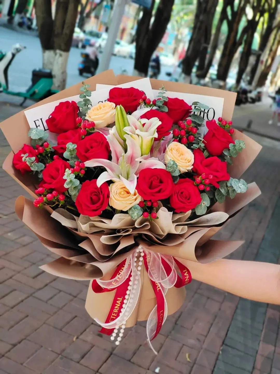 新鲜花材,现做现送,质量有保证。