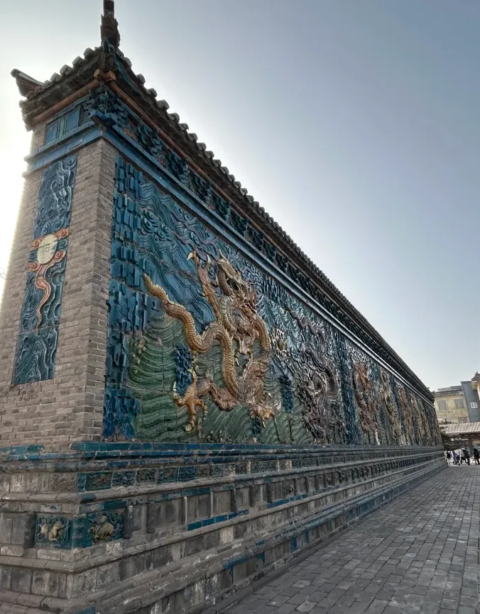 街灯刚亮,街头不嘈杂,行人稀疏,偶尔几声笑语从屋檐下传出。如果想感受这座城的生活气息,可以租辆自行车沿着城墙外慢慢转。路过华严寺,停下来看看那古老的殿宇。它沉默而壮丽,像一位阅尽沧桑的智者。