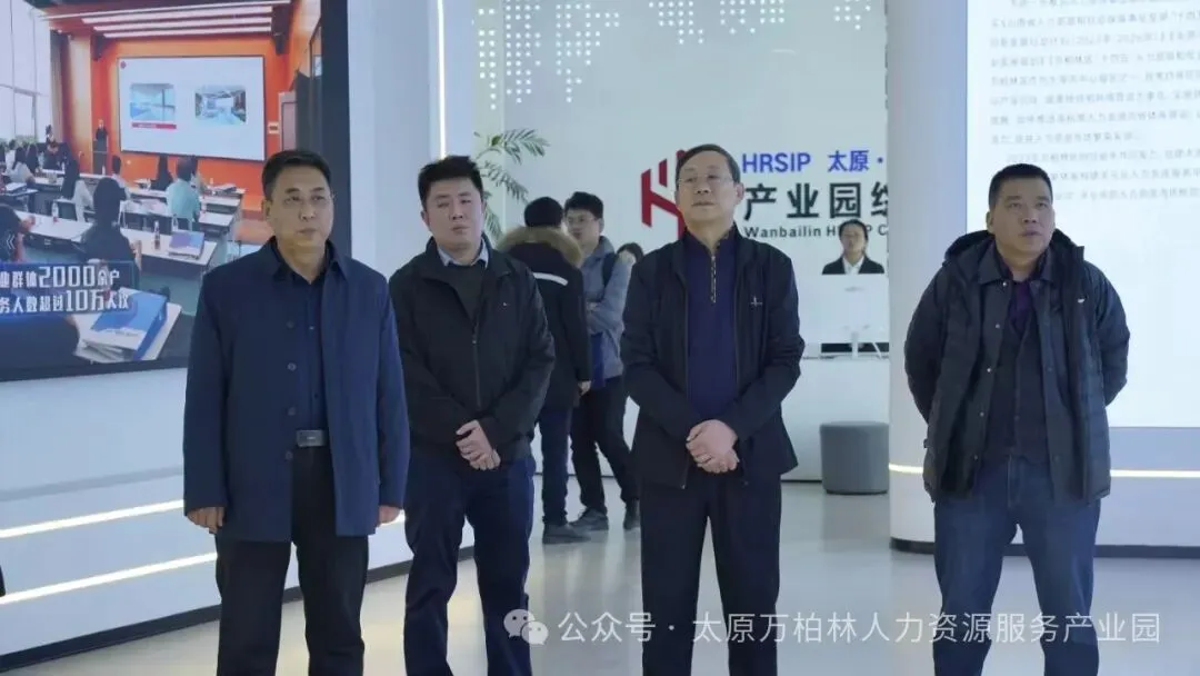 调研组首先参观了太原万柏林人力资源服务产业园的国际人才会客厅,深入了解了产业园的总体布局、建设进展及运营情况。他们对产业园在人才服务方面所做的努力与成就给予了高度评价与充分肯定。