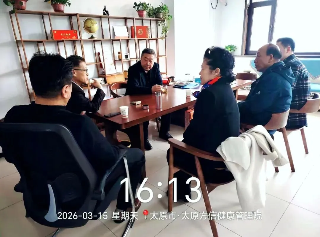 3月15日,太原市生活方式医学学会党支部书记范世林、常务副会长李华、办公室主任义效云一行,应邀前往太原方信健康咨询有限公司参观考察、学习交流。太原方信健康咨询有限公司总经理安慧刚、副总经理董增仁等热情接待并陪同。
