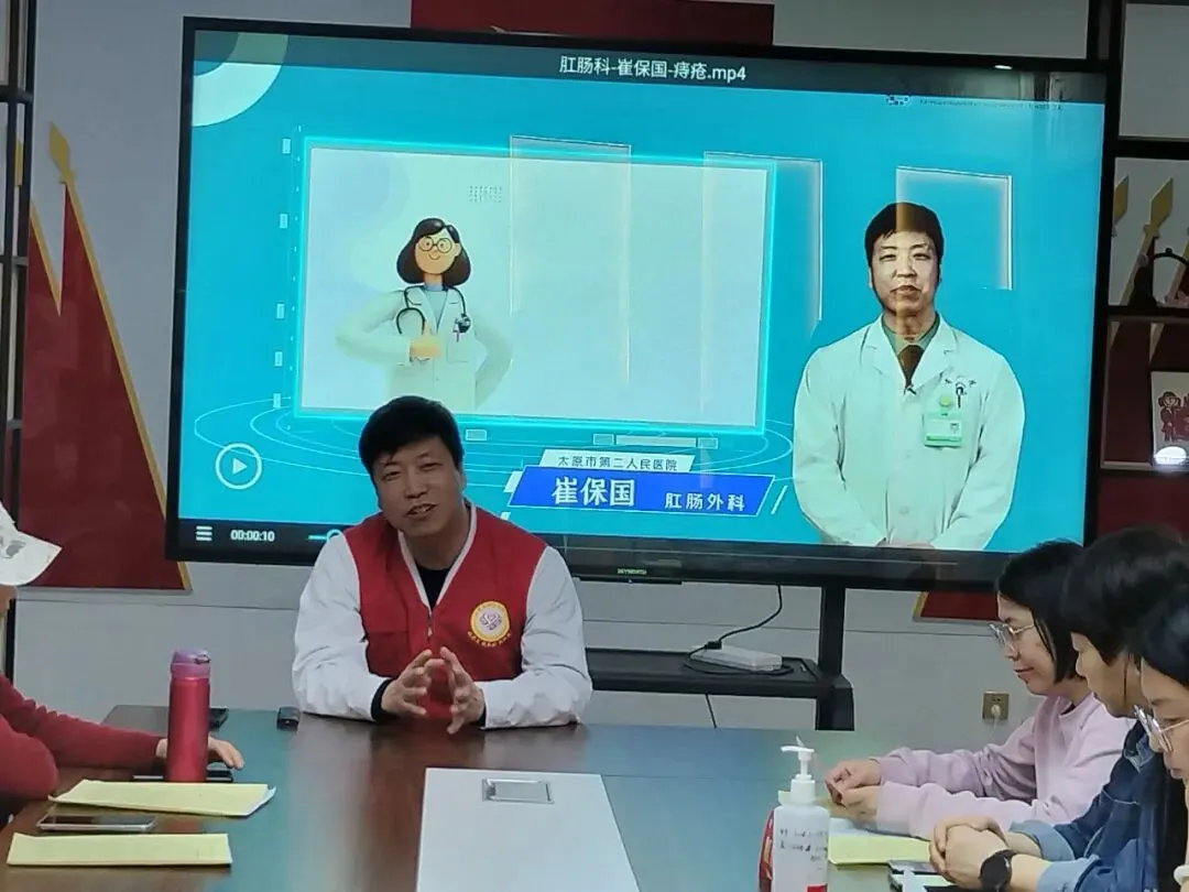 同时,活动现场电子屏还持续轮播科室与太原教育电视台联合拍摄的痔疮、肛裂、肛周脓肿等医学知识科普讲座视频,帮助居民了解肛肠疾病的防治知识。