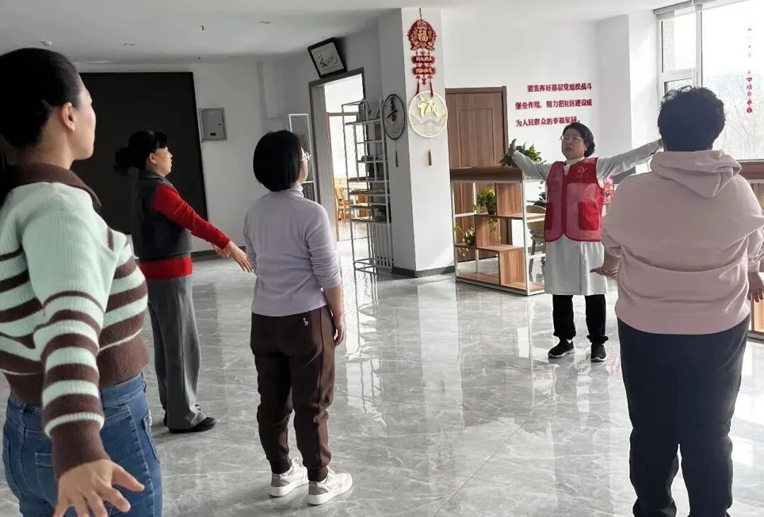 得知党群服务中心同志们存在不同程度的颈椎、腰椎劳损不适问题后,志愿服务领队帅慧荣现场带领大家学做“颈椎操”和腰椎保健日常锻炼、保养办法,鼓励大家加强锻炼,增强体质。