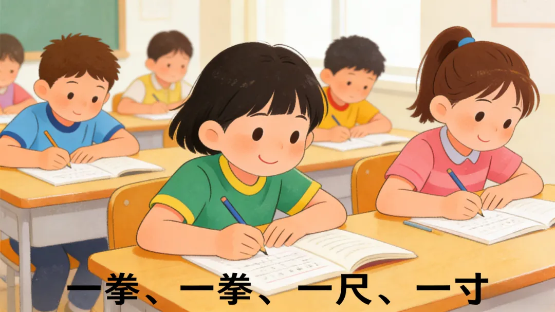 保持“一拳、一尺、一寸”的读写姿势:胸口离桌沿一拳,眼睛离书本一尺(约33厘米),握笔的手指离笔尖一寸(约3厘米)。不在走路、吃饭、卧床、晃动的车厢内看书。