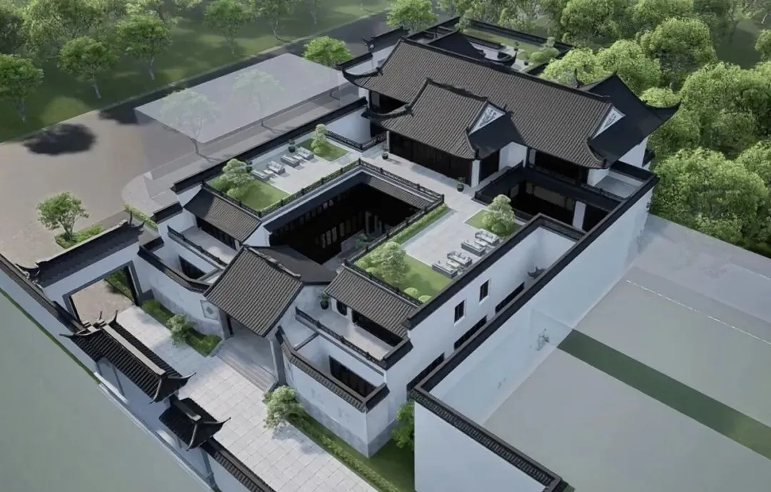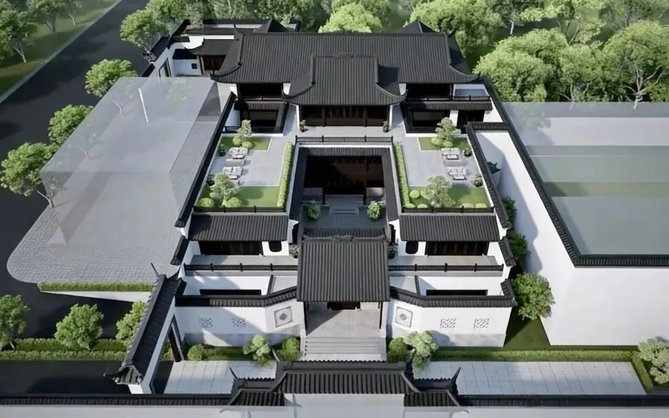 我们采用了三进的主院,加西侧后院的组合模式。方正对称的布局,围合的不只是院落,更是藏风聚气的东方人居智慧与哲学。