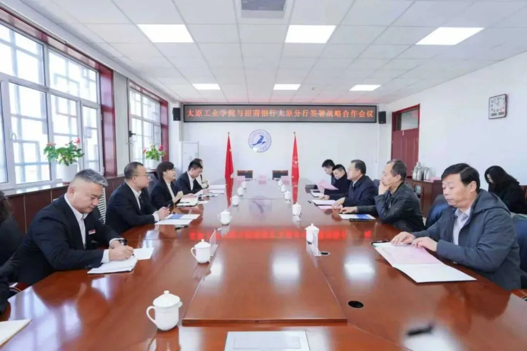 3月18日上午,我校与招商银行太原分行战略合作协议签约仪式在崇德楼617会议室举行。校党委副书记靳金贵主持仪式并致辞,招商银行太原分行零售行长常利一行出席活动。学校党政办公室、计划财务部、教务部、科学技术部、后勤保障部、教育发展基金会等相关部门负责人参加仪式。