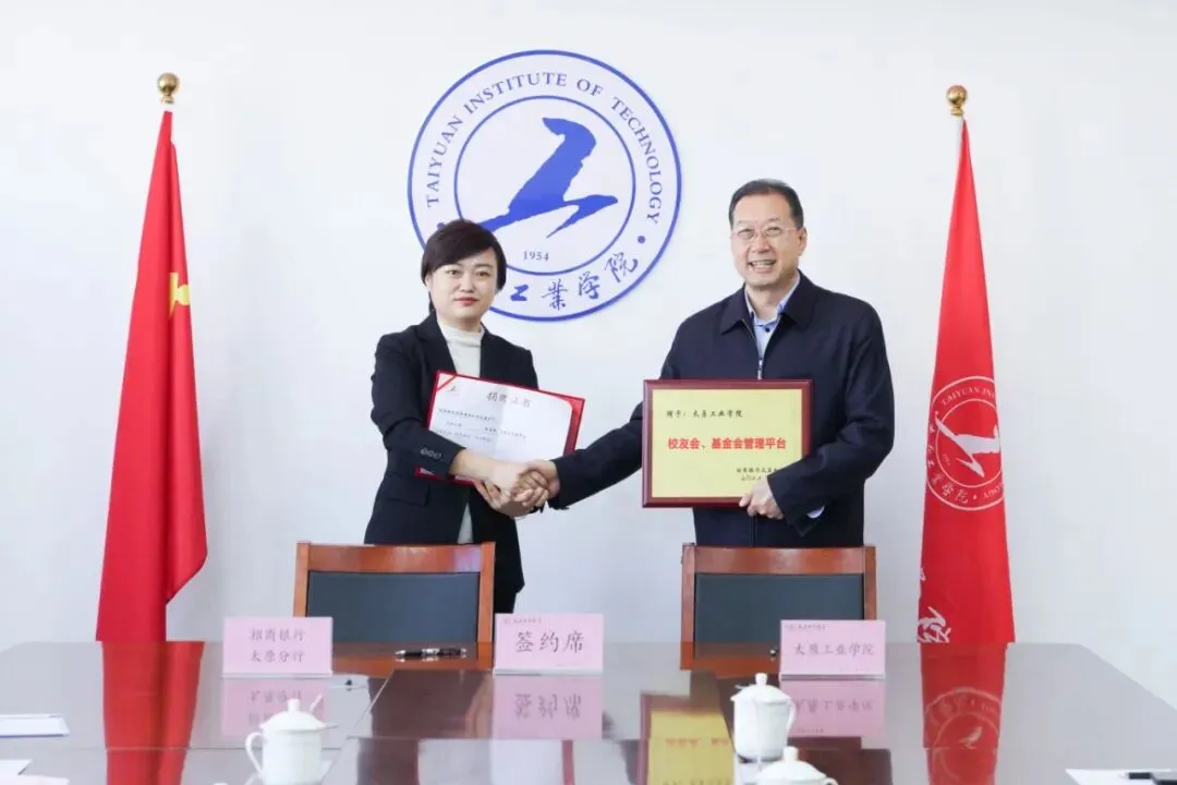 签约仪式上,学校相关负责人与招商银行太原分行代表先后签署了《战略合作协议》和《校友基金会管理平台合作协议》。