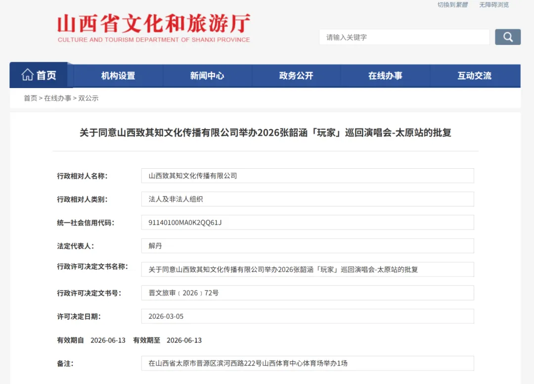 审批状态:已通过山西省文化和旅游厅正式批复
