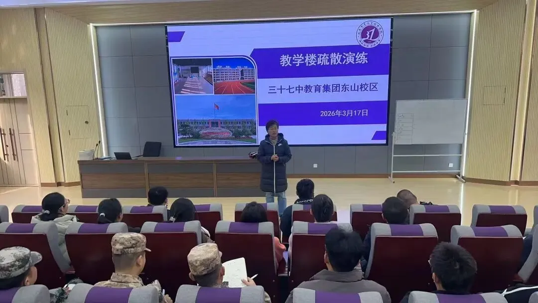 为进一步强化校园安全防线,切实提升师生在面对突发事件时的应对能力,2026年3月18日上午9时40分,太原市第三十七中学教育集团东山校区组织开展了消防与防震应急疏散演练活动。此次演练旨在通过实战模拟,增强师生安全意识,检验应急预案的可操作性,为构建平安校园夯实基础。