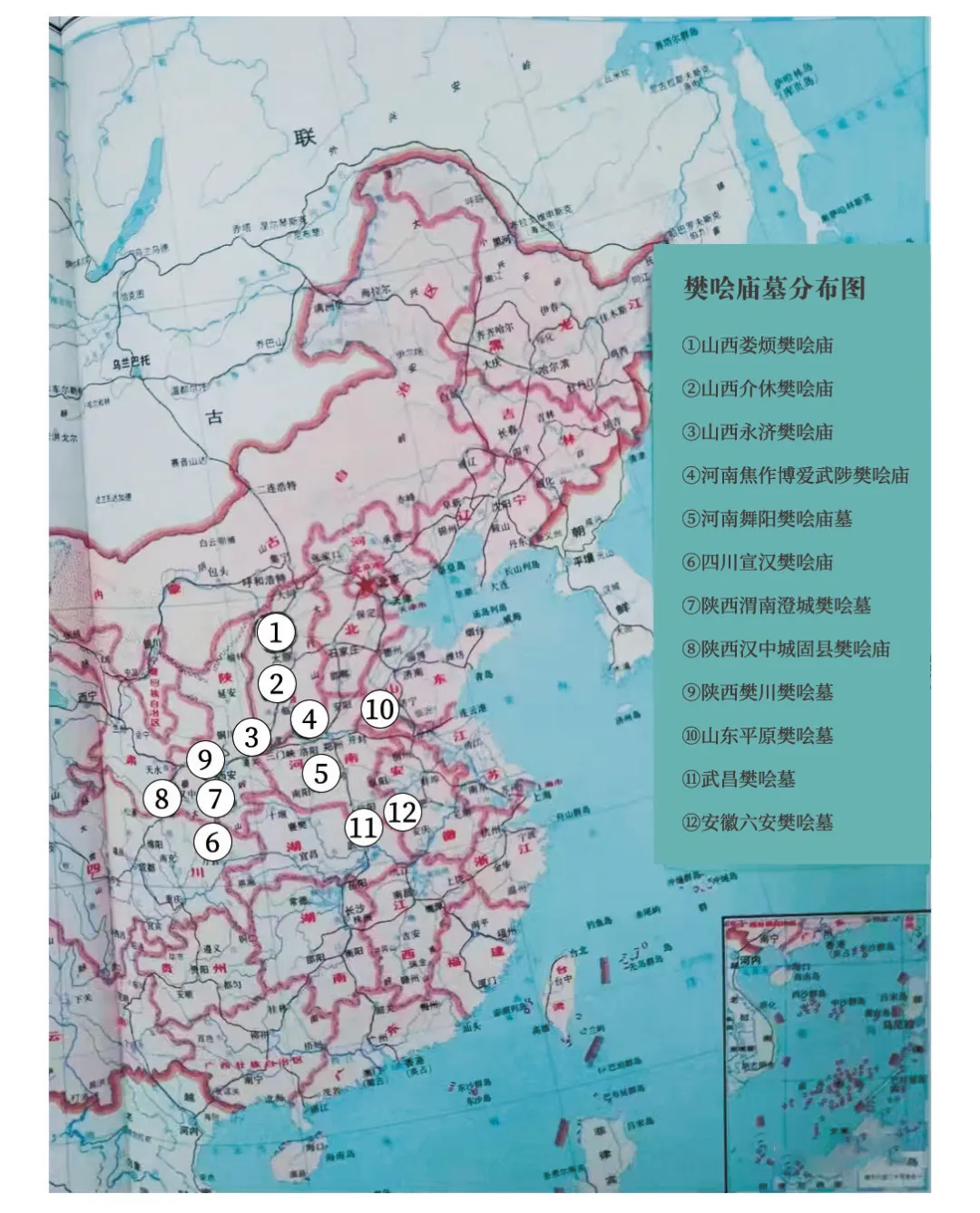 一是樊哙崇拜遗迹的分布范围。史籍记载和现存的纪念樊哙的庙、墓遗迹全国共有十几处,分布在晋、陕、鲁、豫、皖、鄂、川等地,北不过山西娄烦县,南到江淮流域——四川东北部一线,长江以南鲜有发现。