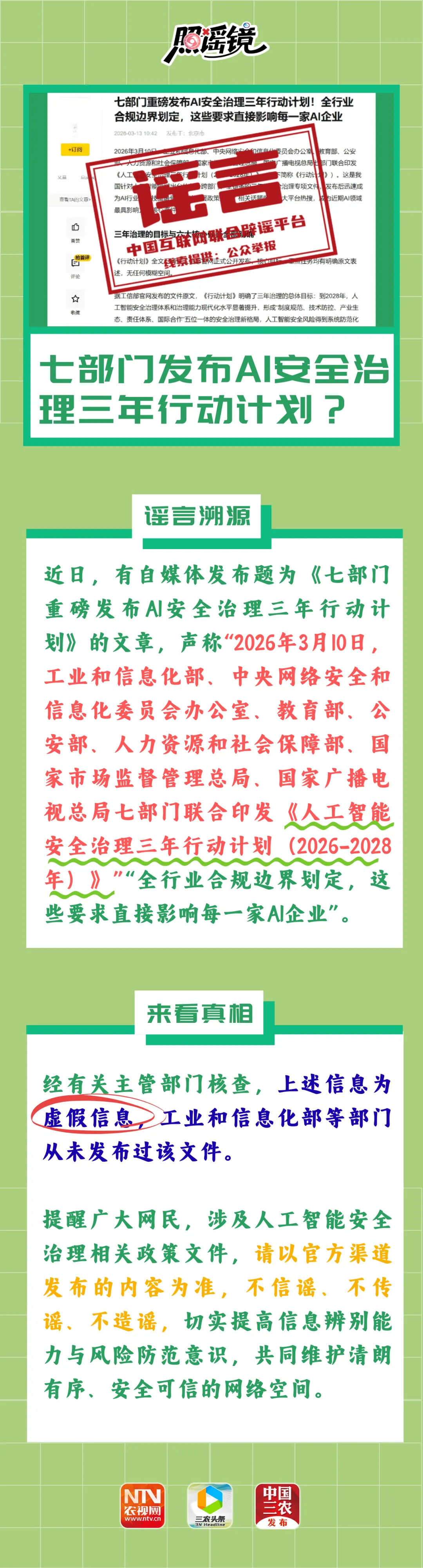 谣言惑众迷方向,真相醒人辨是非。农视网推出《照谣镜》专栏,照向民生热点,照破谣言假象,照出事实真相,照耀你在信息洪流中站稳立场,共建风清气正的网络家园!