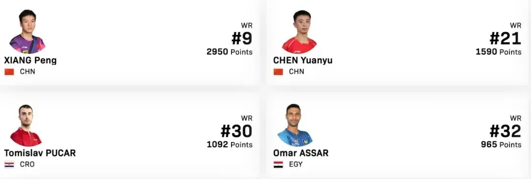 1000积分的重庆冠军赛刚刚落幕,下站比赛马上又要开始了。WTT的赛程真的排得很满。如果站站都参加,选手们确实都没有太多休息和调整时间。此次太原站,是个小比赛,国乒主力选手大都未报名参加。教练组的目的也很明确——以锻炼新人为主,拿不拿冠军,没那么重要。当然,对参加比赛的个人来说,拿不拿冠军还是挺重要的。比如向鹏,2000赛、1000赛拿不了,400赛都没几个高手参加,如果再拿不了冠军,就有点……女单资格赛:姚睿轩、杨惠泽、刘子菱、冯怡璇、姜依依、陈显畅、魏璟茗、王馨雅、张予露国乒主力林诗栋还是未报名单打,石头担当黄友政,报名了双打项目。林诗栋/黄友政双打排名世界第5,作为这次双打头号种子,应该大概率能拿冠军。这站男单头号种子是国乒新秀向鹏,目前世界排名第9。鹏鹏最近打得很挣扎,去年在太原挑战赛男单半决赛,向鹏以0-3被松岛辉空横扫。这站作为头号种子,前8都没来参加,希望鹏鹏能有好的发挥。看了女子项目的报名情况,尤其是女单,国乒采取人海战术,居然有14人报名单打,9人参加资格赛。不知道有没有能打出来的新秀,咱们拭目以待。国乒主力选手石洵瑶作为此站比赛的女单头号种子,拿冠军应该还是十拿九稳的。另外,最近在WTT新加坡大满贯赛连赢科顿、邱党、莫雷加德、张本智和等外协高手的国乒新秀温瑞博,得到了教练组的极大关注。这站太原站比赛,小温就获得了很多机会——同时报名了男单、男双和混双三个项目,希望三线作战的小温能有好的发挥。