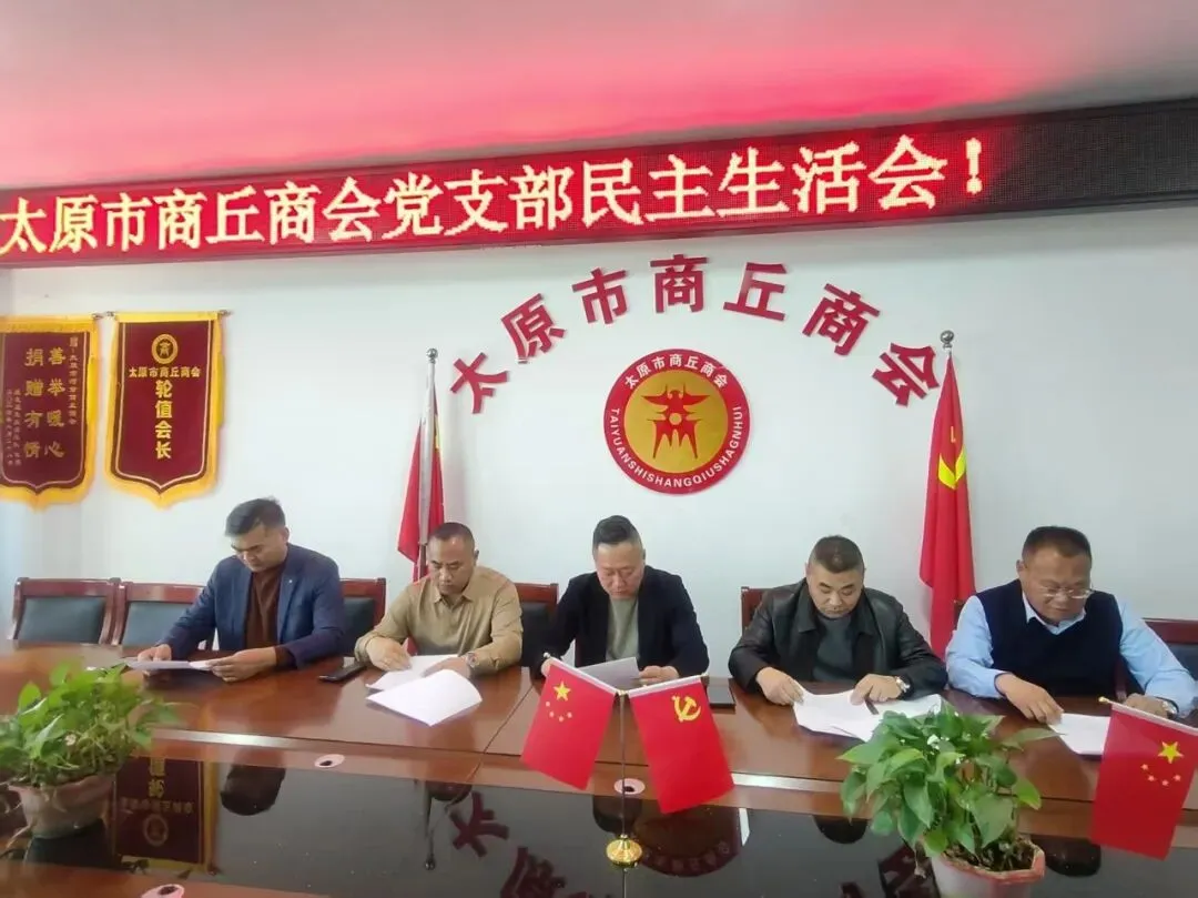 根据《关于开好2025年度市工商联行业党委所属党支部组织生活会和开展民主评议党员的通知》相关要求,太原市商丘商会党支部2026年3月18日下午召开2025年度组织生活会,同步开展民主评议党员工作。党员赵德坤、刘英、宋会军、周书舒、朱耀祯、王祥文、张超、秦春峰、高建民参加,入党积极分子陈振军列席会议。