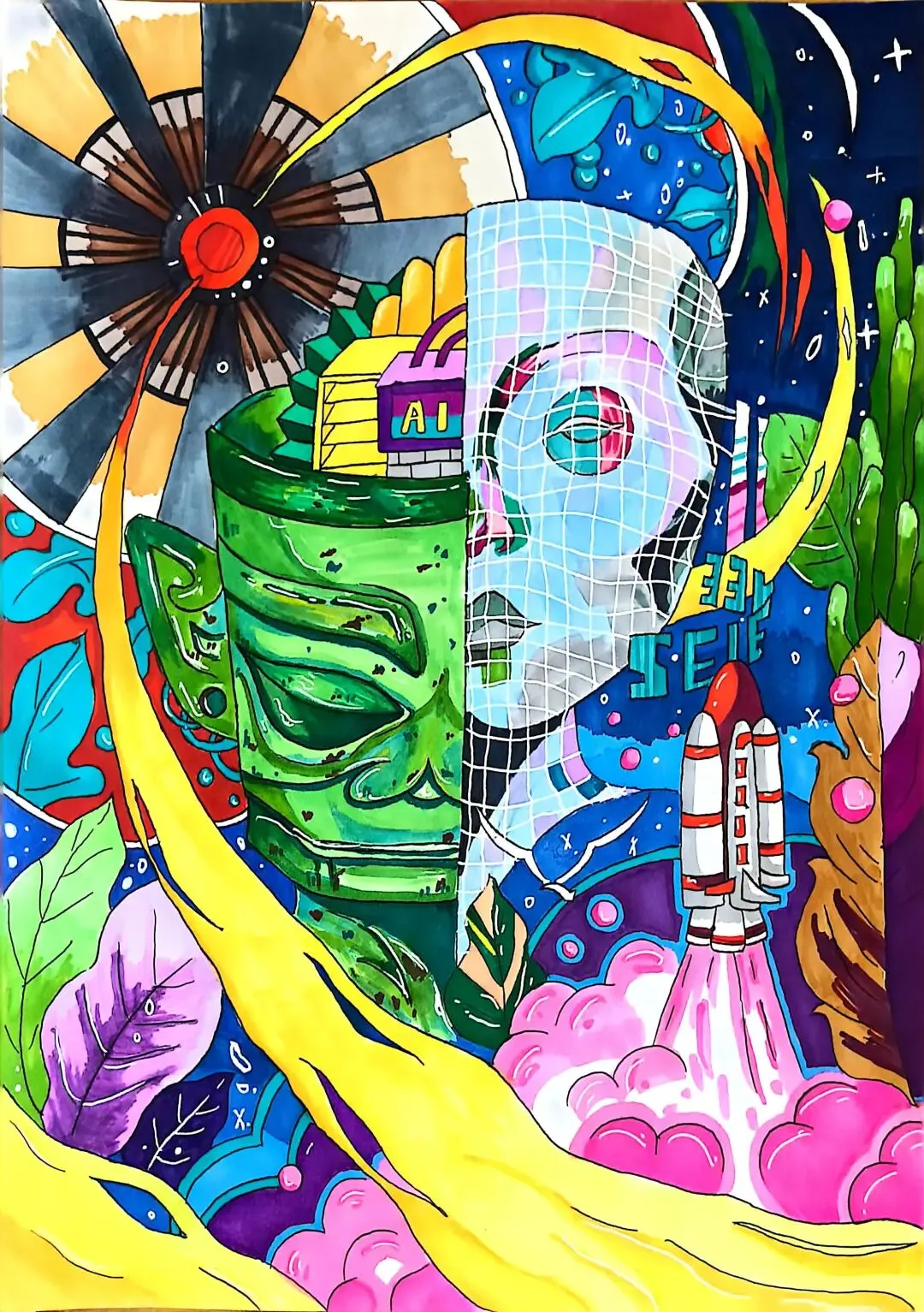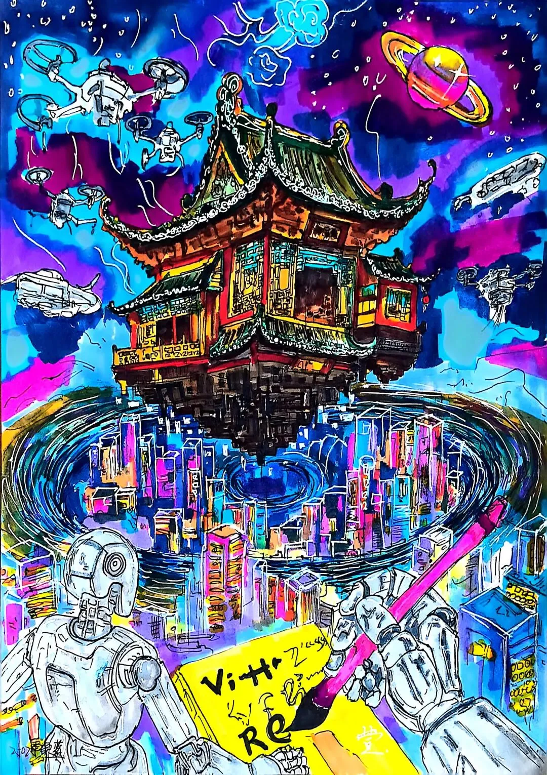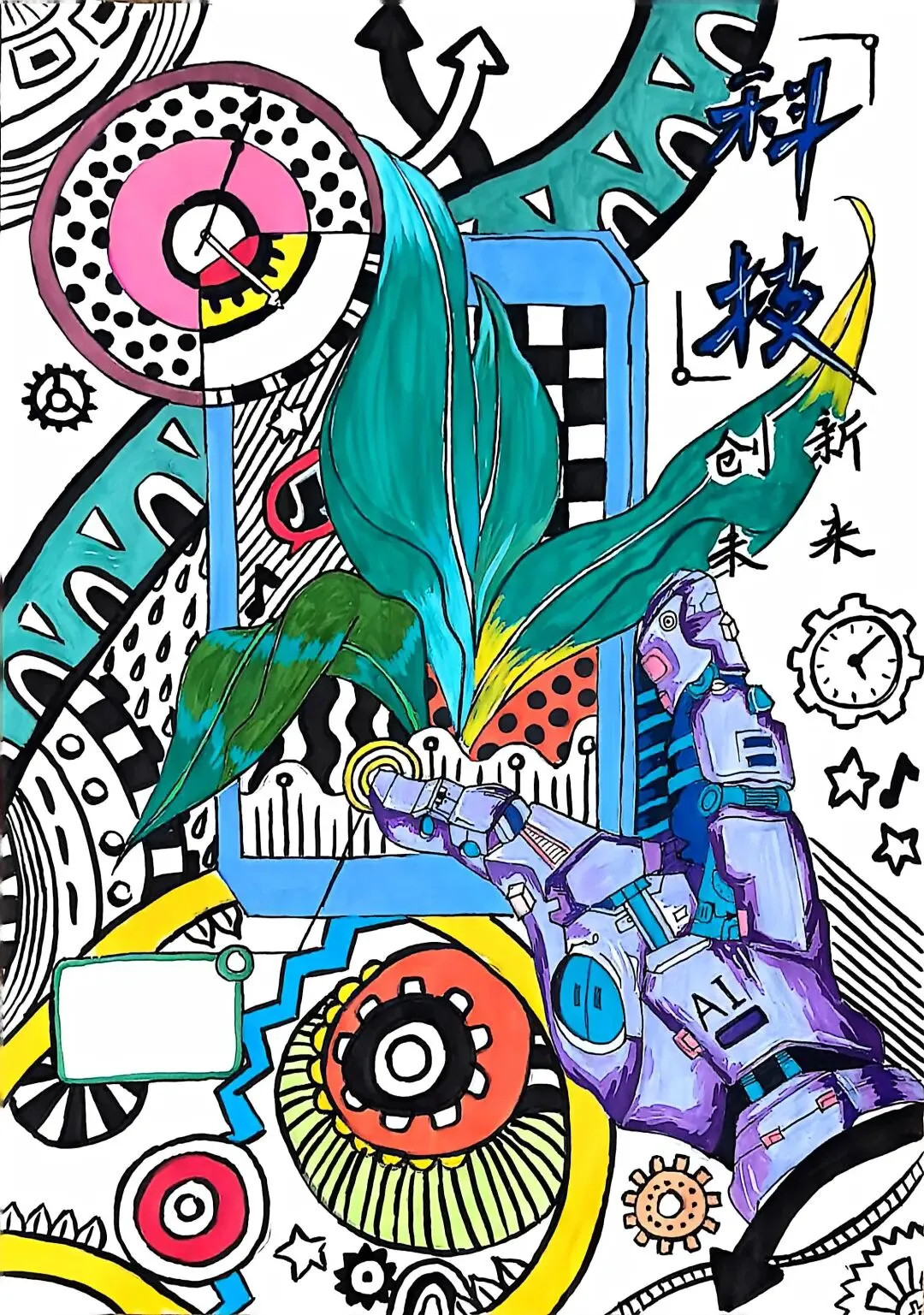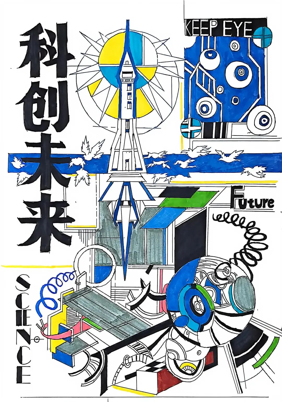 创科技,逐梦想。同学们以笔为翼、以创为魂,画笔畅想未来、巧手搭建模型,用创意脑洞融合艺术与科学。在一笔一画、一拼一装中,探索科技奥秘,锤炼创新本领,将无限好奇化作实践行动,在动手创造中提升能力、逐梦前行。