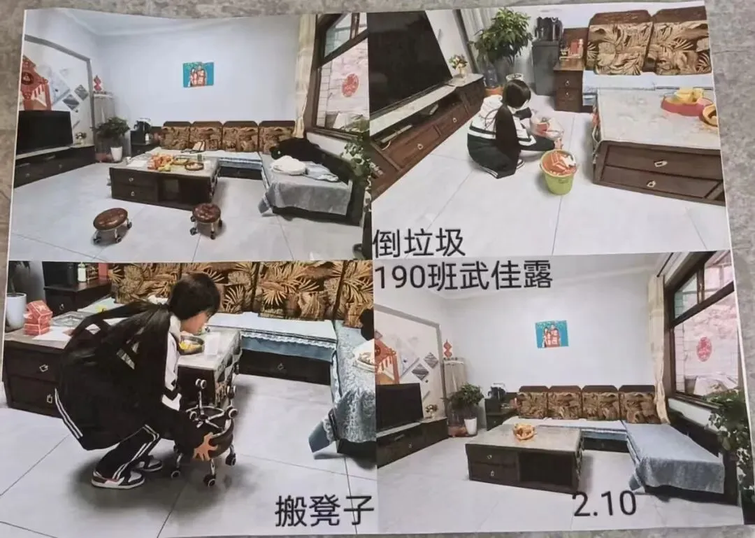 做家务,暖家园。同学们以劳为美、以勤为乐,双手拂去尘埃、巧做家常美味,用一份热忱扮靓温馨家园、烹制团圆滋味。在一扫一擦、一择一炒中,体会劳动价值,扛起责任担当,用干净整洁的环境、鲜香可口的年夜饭迎接新春,让家园满是崭新气象与温情暖意。