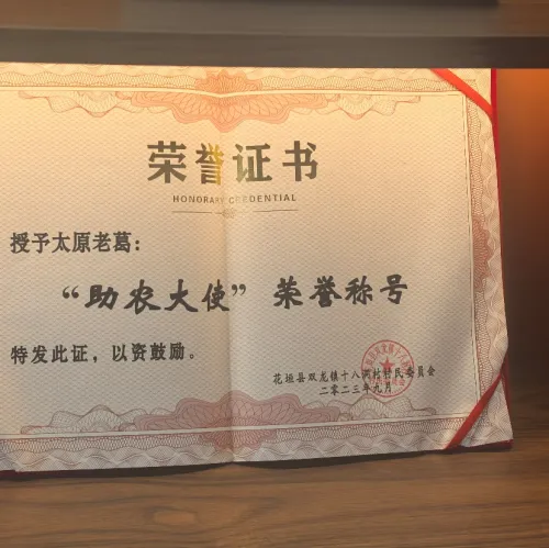 从2017年进入快手至今,老葛的身份标签不断丰富:从娱乐主播、电商主播到好物推荐官再到如今的助农大使。他先后获得第二十五届中国农产品加工业“助农形象大使”、大同市农业局“助农大使”、花垣县“助农大使”、快手生鲜“榴莲带货王”以及“快手助农大使”等荣誉称号。