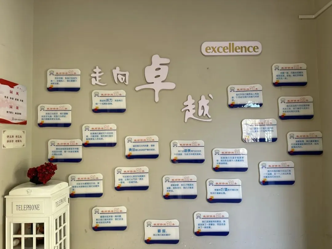 园所精心打造全方位的精神文化阵地。社会主义核心价值观、教师职业道德准则、幼儿行为守则三位一体陈列,与精心设计的文化墙融为一体,视觉美观且内涵深刻。