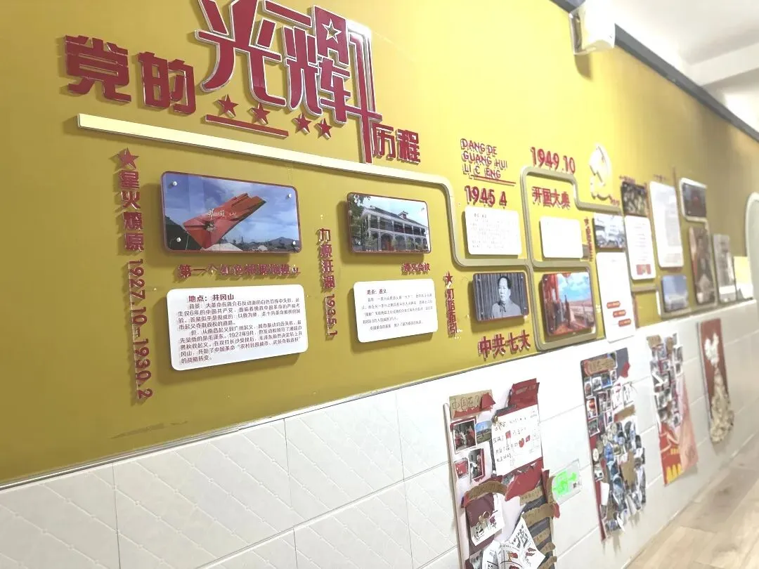 红色基因在这里得到生动呈现,爱国思政墙版面大气规整,红色文化主题鲜明醒目,营造出浓厚的爱国教育氛围,让红色信仰在环境中落地生根。