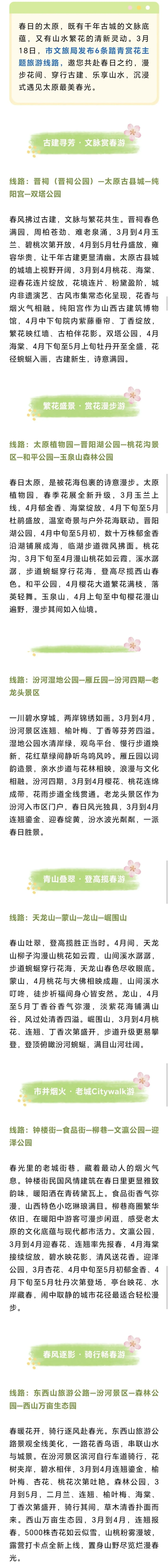 【旅游资讯】锦绣太原城,踏春赏花行!太原市发布六条春季主题旅游线路