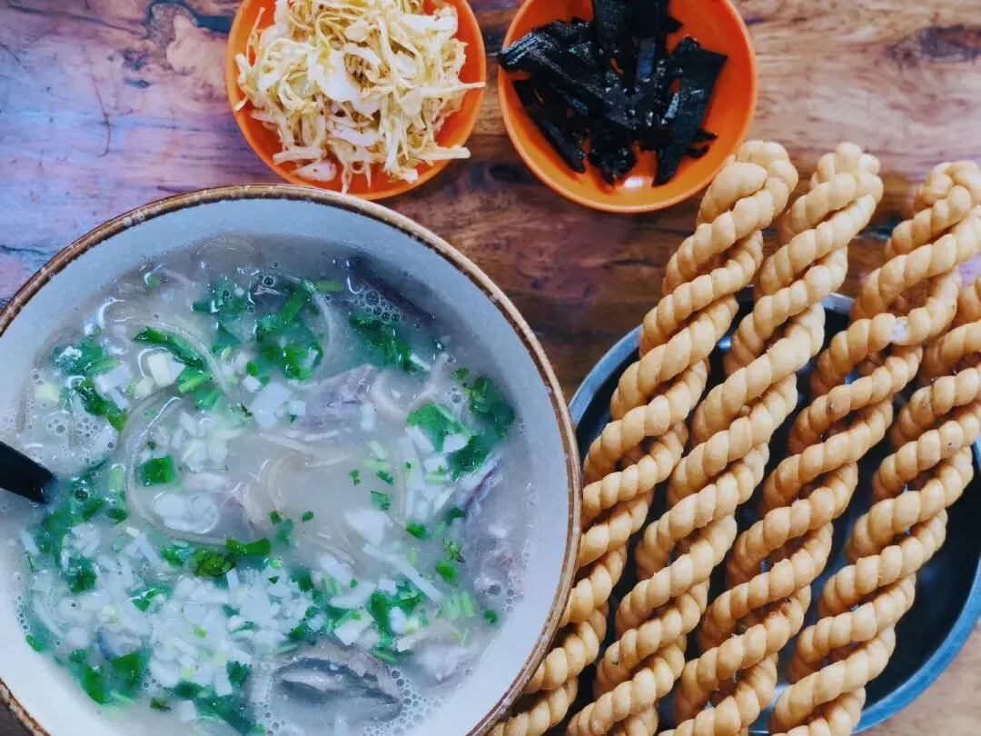 柳溪街口的“新民羊汤” ,麻花脆而不酥,浸泡在汤里充分吸收羊汤的鲜,每一口都是满足。