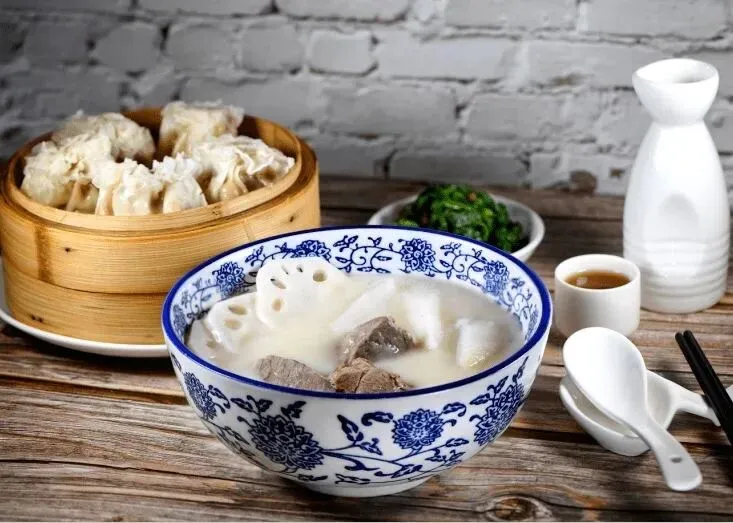 头脑由肥羊肉、藕、山药等食材做成;其汤里的佐料有黄酒、酒糟和黄芪。品尝时可以感到酒、药和羊肉的混合香味,味美可口,越吃越香。功效:益气调元,滋补虚损,活血健胃,富有营养,具有抚寒喘和强壮身体、延年益寿的作用。