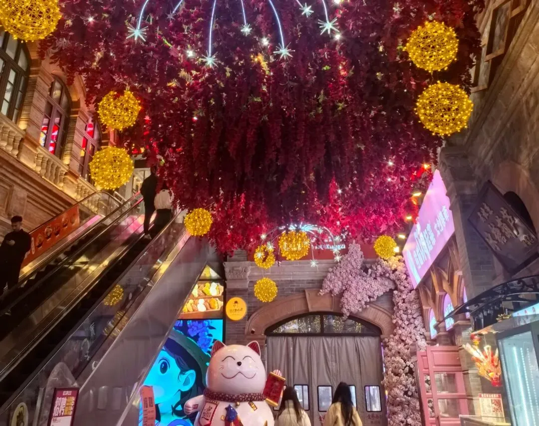 仿明清建筑飞檐翘角,红灯笼串起流光,老字号与新潮店比邻而居。
