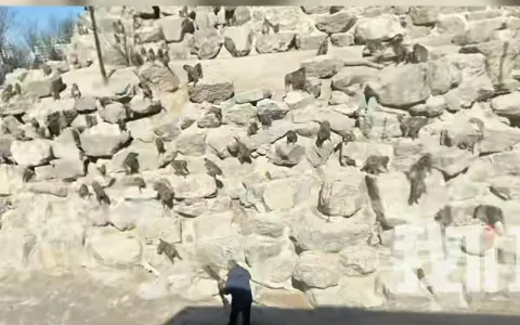 山西太原动物园一岁猕猴意外跌落死亡,饲养员进入现场将这只猕猴取出来救治,其间猴群试图围攻阻止