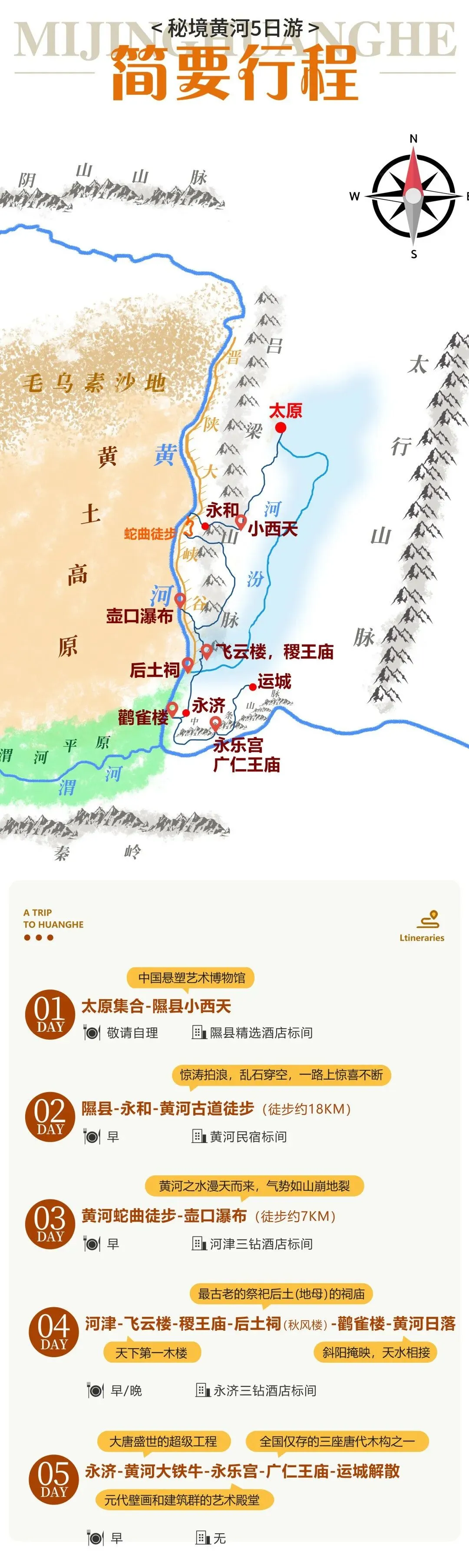 1、客人各地往返太原/运城的大交通(机票、火车票自理);