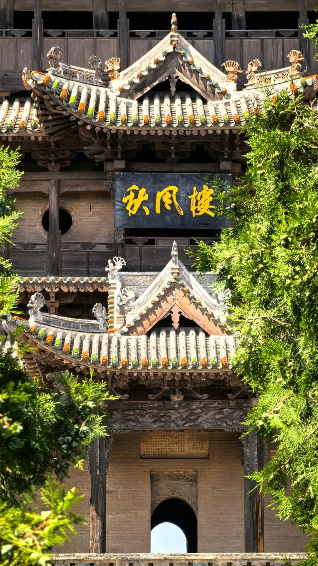 首先走进【飞云楼】。这座与应县木塔齐名的“中华第一木楼”,通体榫卯相扣,无一颗铁钉。仰望其斗拱层叠、檐角飞扬的姿容,宛如繁花盛放、云翼凌空,中国木构建筑的智慧与美学在此登峰造极。