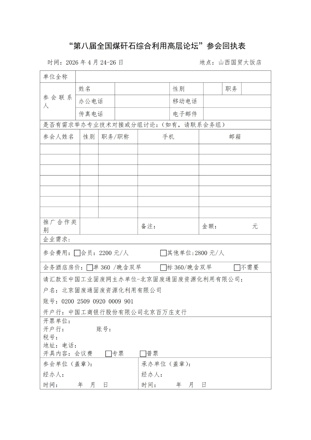 附件2:“第八届全国煤矸石综合利用高层论坛”参会回执
