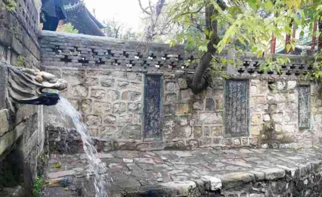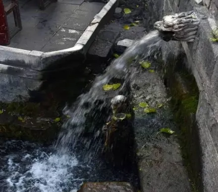 与周柏相呼应的,是晋水的源头——难老泉。泉水出自悬瓮山断层岩,水温恒温17℃左右,即便在隆冬,水中特有的水草依然碧绿如茵。傅山所书的“难老”匾额,笔力遒劲,寓意泉水生生不息。正是这“难老”的泉水,滋养了晋祠的千年古木,也孕育了灿烂的晋文化。