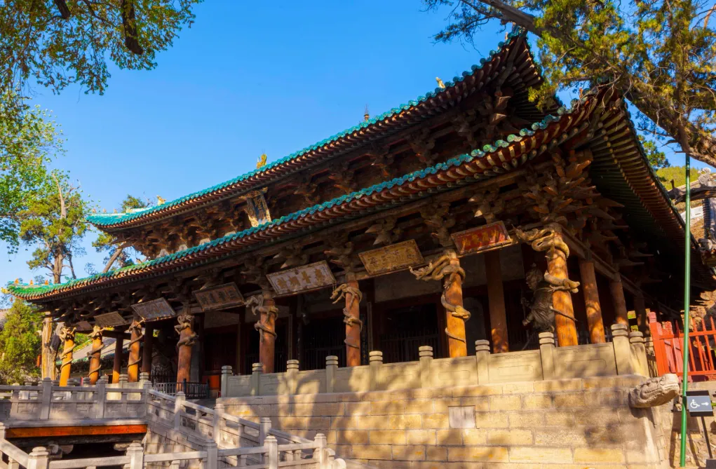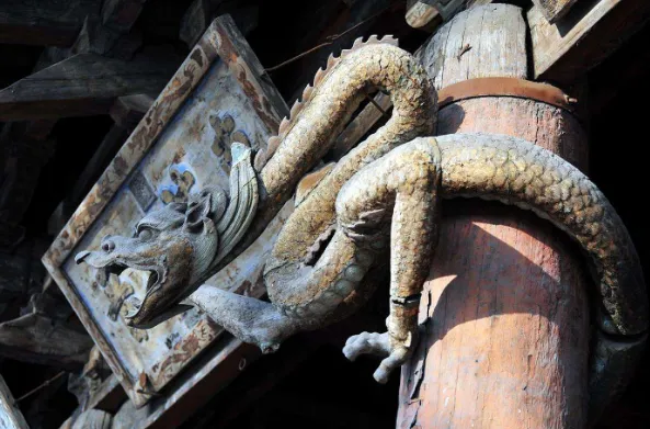盘龙雕柱的孤例:殿前檐柱上雕有八条盘龙,怒目利爪,栩栩如生。这是我国现存古建筑中唯一的宋代木雕盘龙遗存,弥补了宋代建筑中木龙雕刻的空白,是研究宋代龙形艺术演变的珍贵实物。
