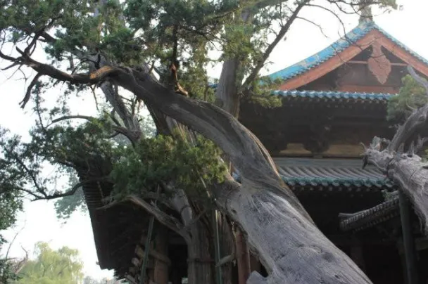 在圣母殿的北侧,有一株树龄近3000年的周代古柏。此树高近20米,树干粗壮,需数人才能合围。虽历经沧桑,部分枝干已枯,但依然苍劲挺拔,新枝繁茂。北宋文学家欧阳修曾以“地灵草木得余润,郁郁古柏含苍烟”的诗句来歌颂它的古老。这株古柏,不仅是晋祠历史的见证者,更象征着三晋大地顽强的生命力。