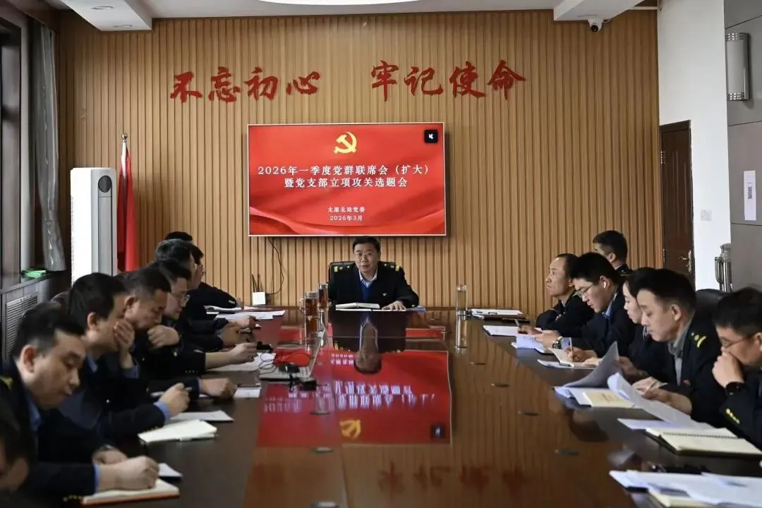 3月17日,车站党委召开2026年一季度党群联席会(扩大)暨党支部立项攻关选题会。会议听取各部门4月份重点工作安排及集团公司3月党建会精神落实情况,各党支部汇报2025年攻关项目总结及2026年选题计划。会议对4月党建重点任务及立项攻关课题作出部署,强调要以高质量党建引领运输安全生产,推动党建与业务深度融合、同向发力。