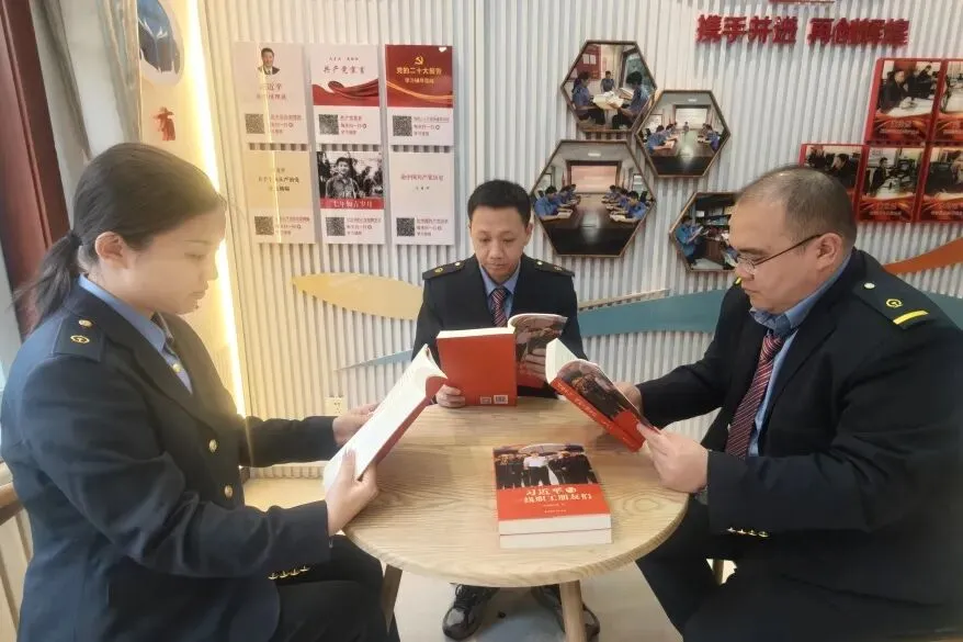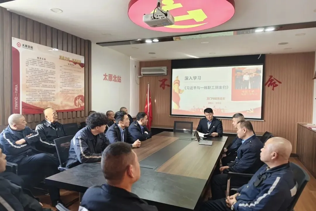 近日,玉门沟站组织开展专题学习活动,火车头奖章获得者、行车丙班值班主任王纪文带头领学《习近平与一线职工朋友们》。王纪文结合自身扎根行车一线的工作经历,用朴实真切的语言解读书中内涵,引领身边职工学深悟透、凝心聚力,把学习感悟转化为坚守岗位、履职尽责的实际行动,在保障铁路运输安全的征程上勇担使命、奋勇争先。