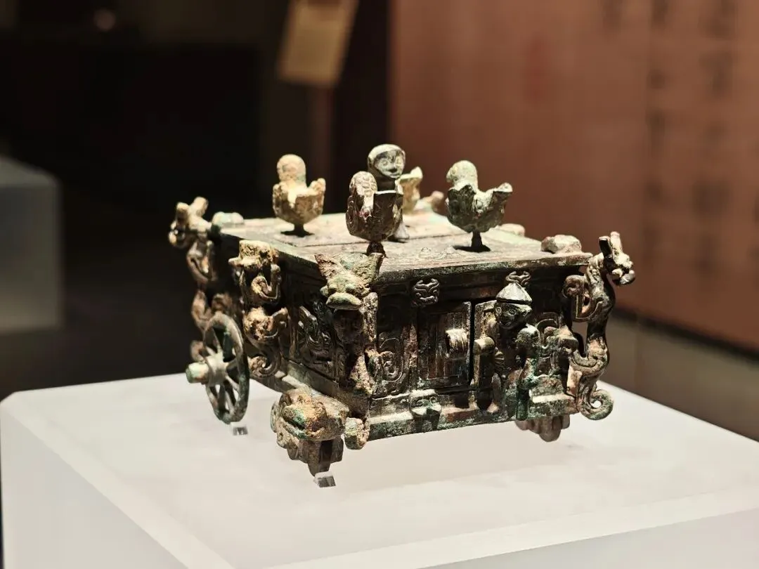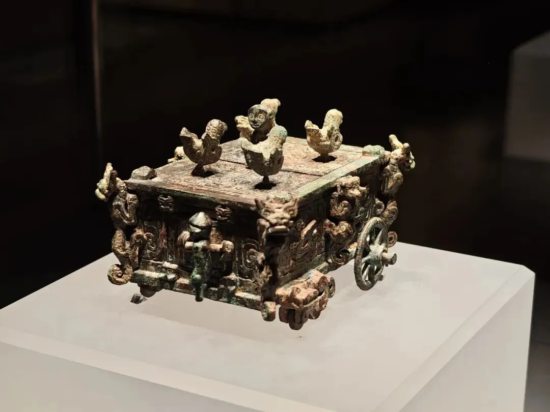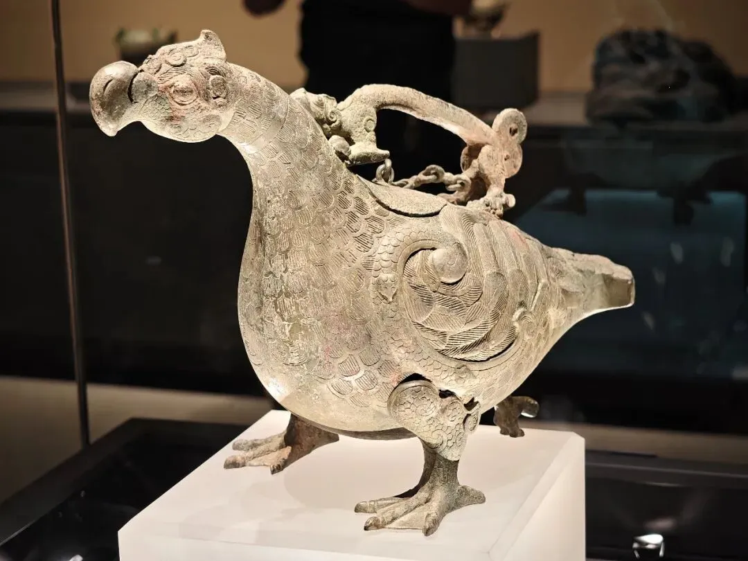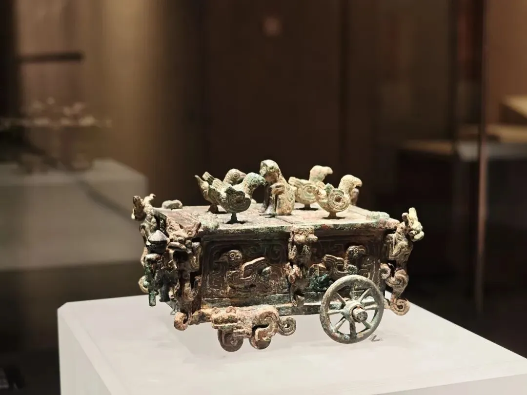 又一件镇馆之宝,刖人守囿车,2000多年前的青铜玩具,在省博听了老师讲解,实物在青博物馆这边。做工非常精美,大小就比我手掌大一点,全车共有15 处可活动部件,是中国早期青铜机械工艺的巅峰之作。顶盖双扇可开启,盖面嵌有猴形捉手,周边环绕 4 只飞鸟,鸟身内置顶针与灌铅结构,吹气即可旋转飞舞。器壁有凤鸟纹与兽形装饰,四角攀附虎、熊等动物形象,共 14 个立体动物造型。车门:一侧开小门,门扉上立一刖人,右臂夹门栓,控制车门开闭。但这也并不仅仅是玩具,刖人指的是受刑的人,他左脚缺失、拄拐杖,直观展现了上古五刑(墨、劓、宫、刖、杀)中刖刑的残酷,是中国刑史的重要物证。老师戏称:你看我们现在都玩塑料玩具,2000多年前的小孩儿玩的都是青铜玩具,简直比不上人家。春秋赵卿鸟尊,状鸟喙可自由开合—— 倾倒酒液时自动开启,复位时闭合,设计精巧。三晋分家:公元前 453 年,韩、赵、魏三家联合灭掉智氏,三分晋地,晋公室名存实亡;前 403 年,周威烈王册封韩虔、赵籍、魏斯为诸侯;前 376 年,魏武侯、韩哀侯、赵敬侯瓜分晋国公室剩余土地,晋国绝祀。