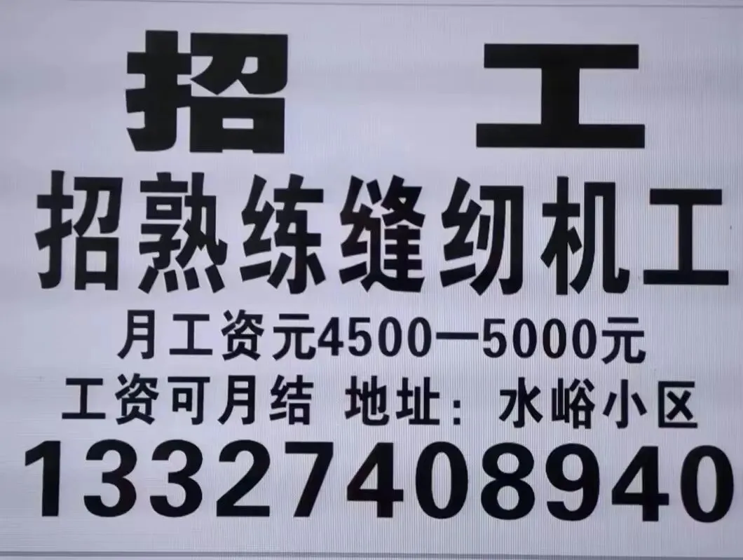 招聘,窗帘加工厂,辅工,男女不限,30以上,有无工作经验均可,月薪4000到5000,地址朝阳街山姆士超市,联系电话17735372277
