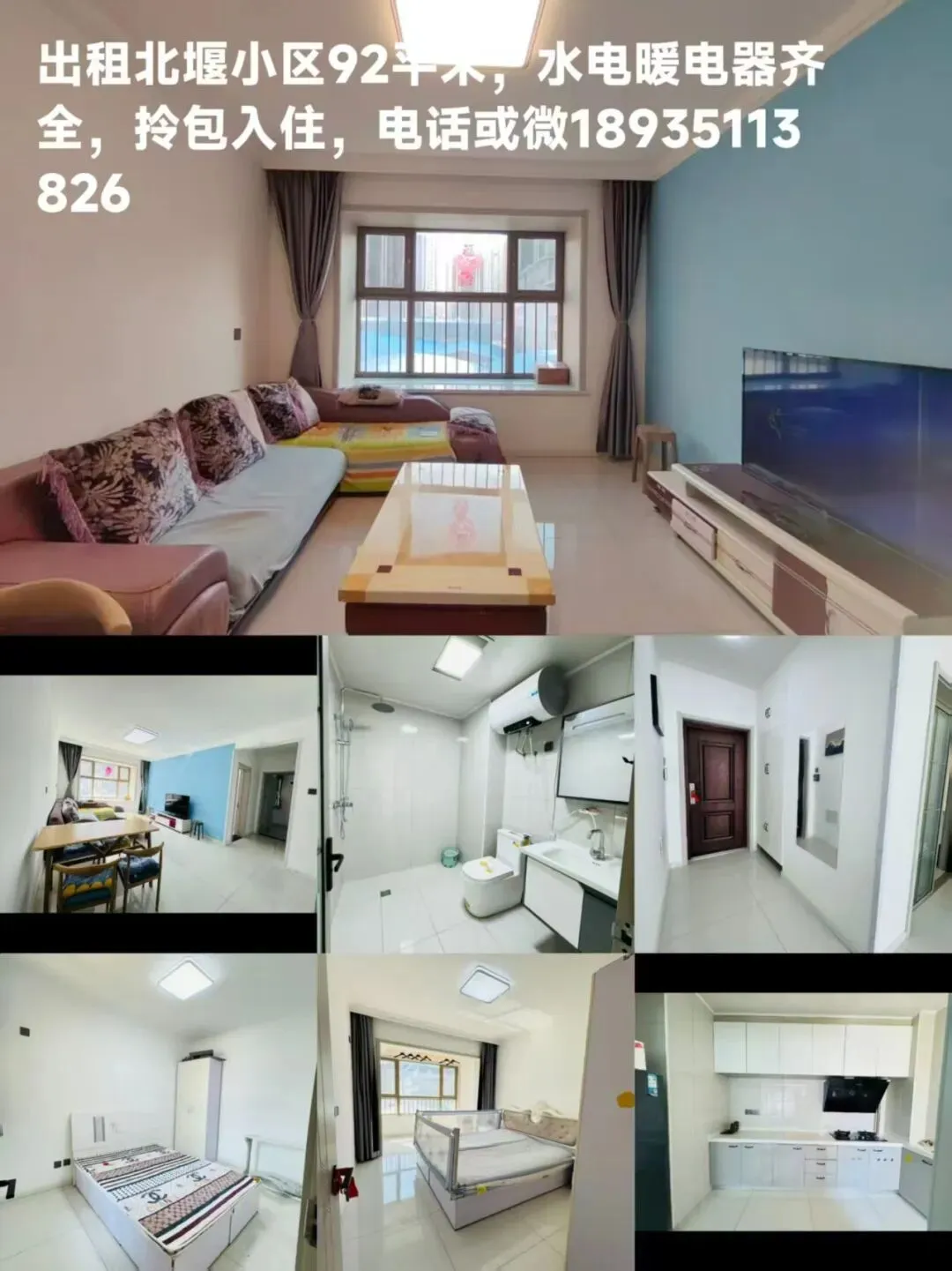 出租北堰回迁小区92平米,水电暖电器齐全,拎包入住,电话或微18935113826