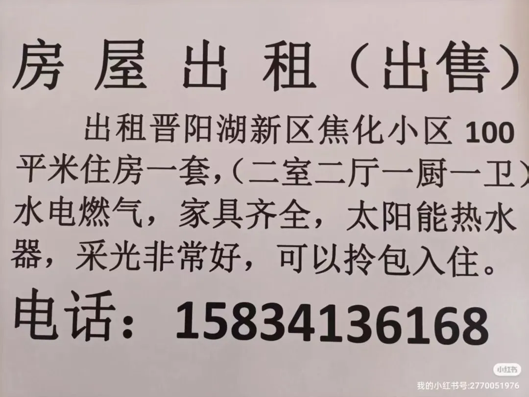 管理员早上好!我想找一份照顾老人的工作,工资4000_5000电话:15834003893太原市杏花岭区旱西关桃园商务大厦4层有写字楼出租总面积1300平米可以分租多大都有。电话13703584262黄金地段,房东诚意岀租,300平米小二楼,水 电 暖齐全,停车方便,紧邻潇河 晶科,无论是办公,超市,饭店,幼儿园 小型仓库都是不错的选择,希望有诚意的老板实地考察。租房电话13191099158 15534473686房屋出租(出售)出租晋阳湖新区焦化小区100平米住房一套,(二室二厅一厨一卫水电燃气,家具齐全,太阳能热水器,采光非常好,可以拎包入住。电话:15834136168小红书我的小红书号:2770051976