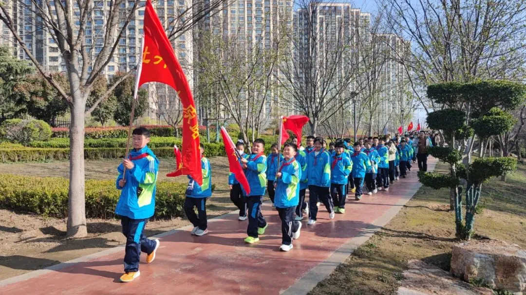 沿途春意盎然,微风和煦。同学们排着整齐的队伍,一路欢声笑语,欣赏春日盛景,感受自然生机,在轻松愉悦的氛围中奔赴这场科技之约,为研学之旅注入了满满活力。