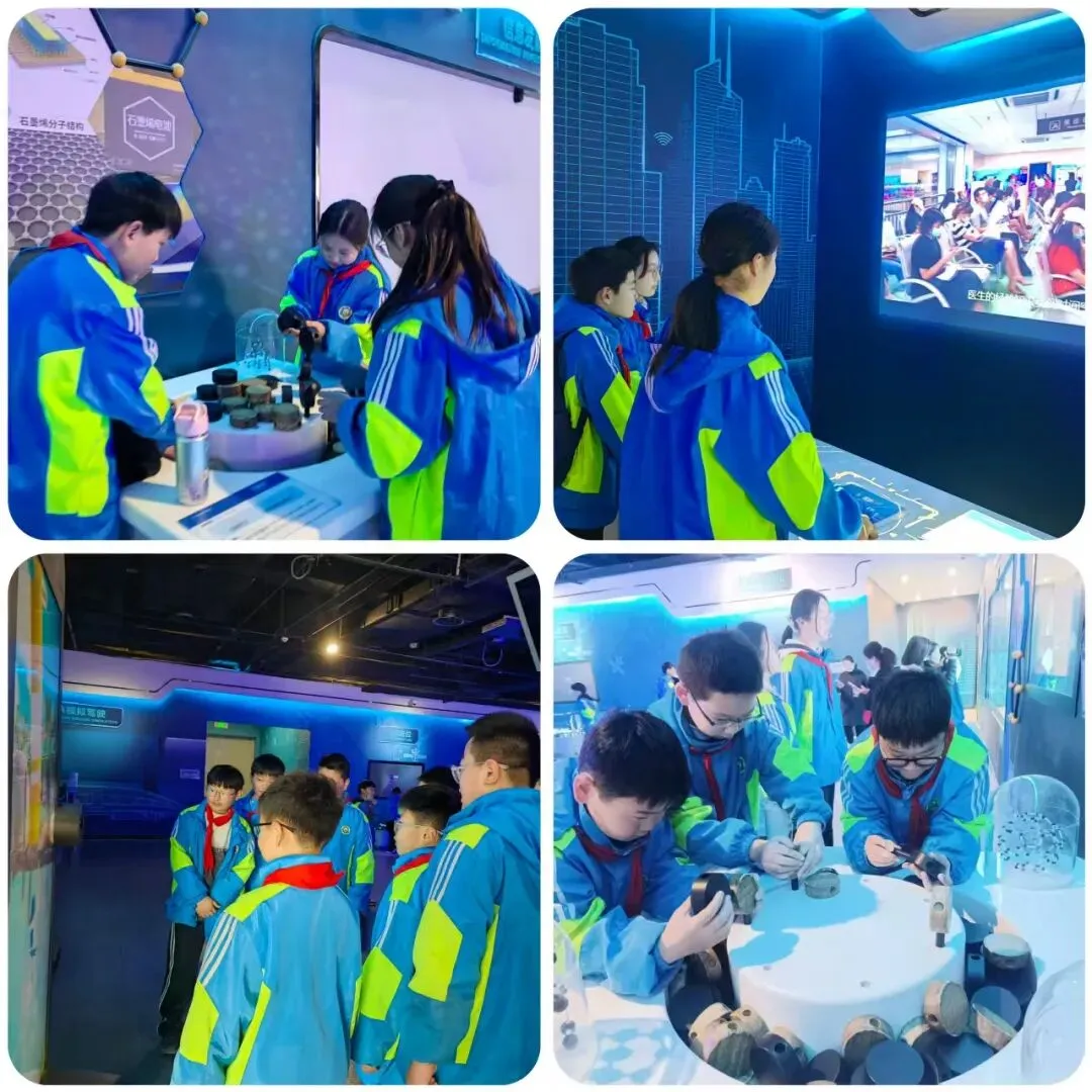 拾级而上抵达四楼,智汇未来展厅的前沿科技令人耳目一新。航空航天、信息技术等领域的精彩展示,让同学们近距离感受科技创新的磅礴力量,在惊叹与好奇中,埋下崇尚科学、向往未来的种子。