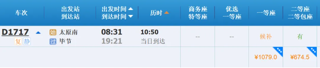 ✅交通:从太原乘坐铁路至毕节,预计行驶10-11小时,二等座票价674.5元起