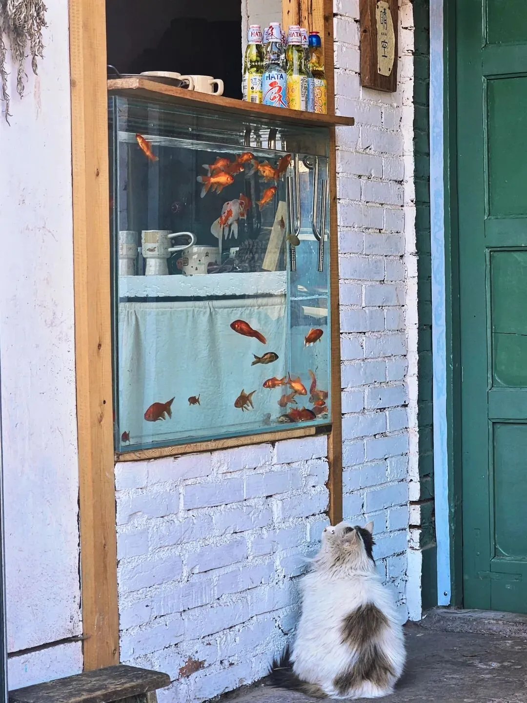 11.小店隔壁是猫咪的家,红绿搭配,让人想起了《大号是中华》:孩子,这是你的家,红砖碧瓦......